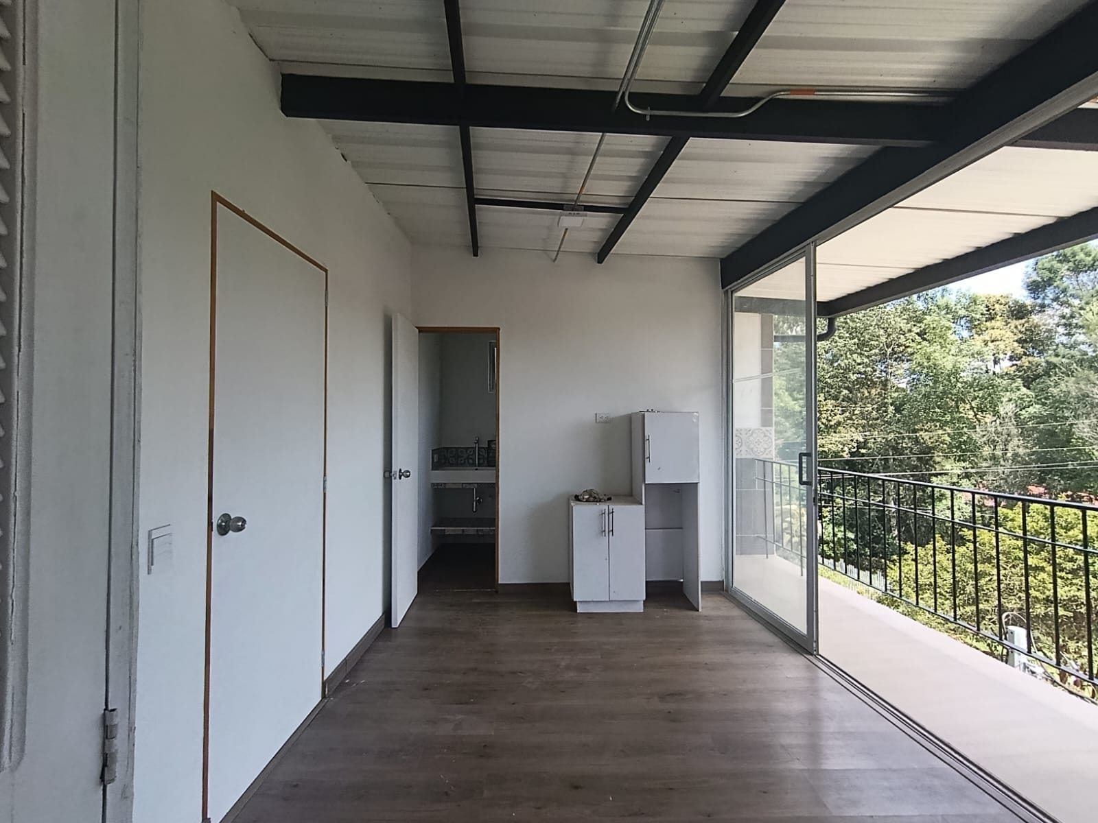 El apartamento en renta se ubica en un edificio de fachada sencilla y urbana, directamente conectado a la vía pública. La estructura presenta muros en acabado pintado y ventanas medianas con marcos metálicos que brindan uniformidad al frente. El acceso principal se realiza a través de una puerta metálica situada sobre la acera, sin porterías ni cerramientos. El edificio cuenta con balcones pequeños en algunos niveles y una iluminación exterior básica que asegura visibilidad nocturna. El entorno inmediato combina viviendas y comercios, ofreciendo fácil acceso y movilidad, que esperas para agendar tu visita