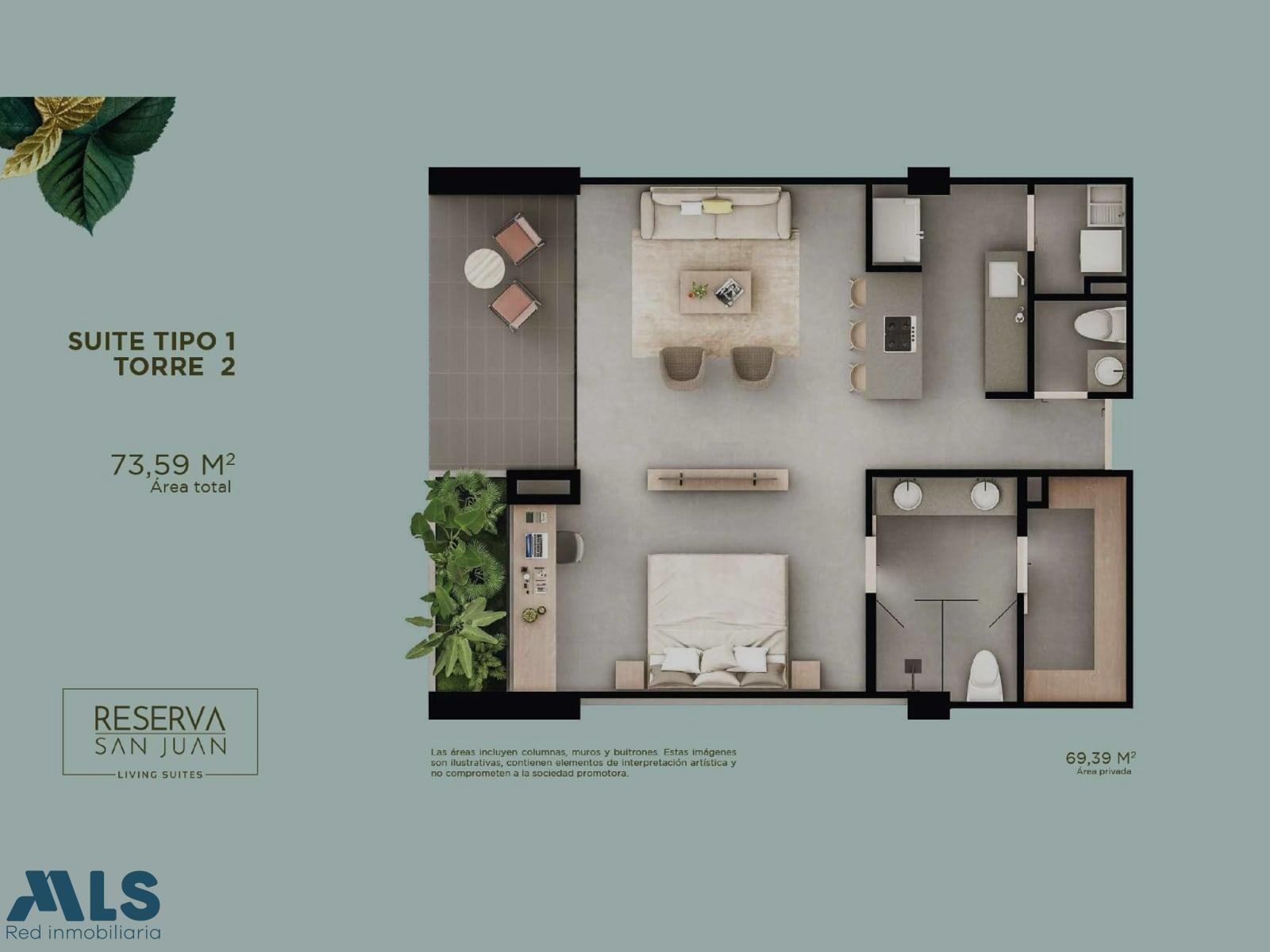 Suite tipo loft, con habitación con baño y vestier, espacio de estudio, cocina abierta, balcón, baños social A 25 minutos de Medellin en un entorno rodeado de bosque y aire puro ✅ Área: 73,59 m2 Las zonas comunes: coworking. un gimnasio que mezcla lo mejor de la formación cardio y el hard work del crossfit, Una zona húmeda, salones de juego , jardín infantil, sala de juegos y simuladores de golf Todo esto sin olvidar los más de 8.000 m2 de bosque y 500 m de senderos privados para caminar AP-RET-0307