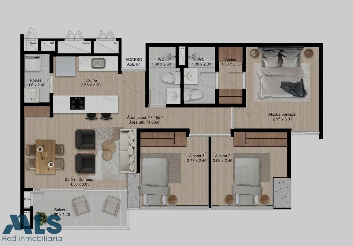 Apartamento en el Poblado - Los balsos, de 125 metros distribuidos en 4 habitaciones definidas, la principal con baño y dos closet, y las auxiliares con closet, baño completo para las habitaciones auxiliares y baño social, cocina abierta, zona de ropas, sala comedor amplia, balcón, parqueadero doble lineal y cuarto útil. La unidad cuenta con porteria 24 horas, piscina, zona verde, salón social , juegos infantiles y tiene una excelente ubicación que le permite tener cercania a vias principales y mall complex de los balsos.