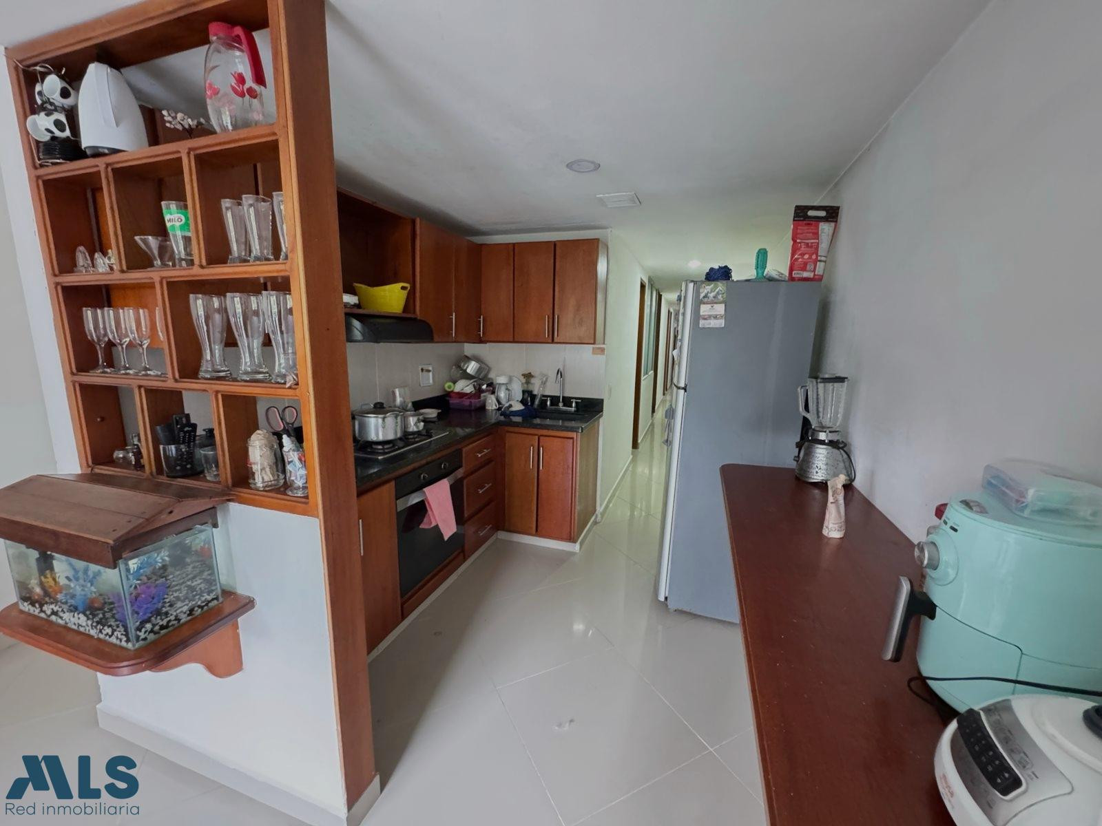 Apartamento en Venta Caldas Antioquia, con muy buena ubicación, cerca al parque la Locería. Está ubicado cerca de supermercados, iglesias, parques, droguerías, entidades prestadoras de salud y facilidad de transporte para las diferentes rutas del municipio. La propiedad está muy bien distribuida con espacios amplios, con iluminación y ventilación natural. Cuenta con 79 metros cuadrados distribuidos en 3 alcobas amplias todas con closets, pasillo. Alcoba principal con baño, 2 baños enchapados y cabinados, (baño alcoba principal y baño social.) La cocina cuenta con todos los equipamientos necesarios, cubierta, campana, mueble superior e inferior en madera, adicional hay una barra tipo americano. La zona de ropas tiene una división en vidrio de protección y calentador de agua. Los techos, closets, puertas y demás piezas en madera, están bien terminados, cuentan con muy buenos acabados.