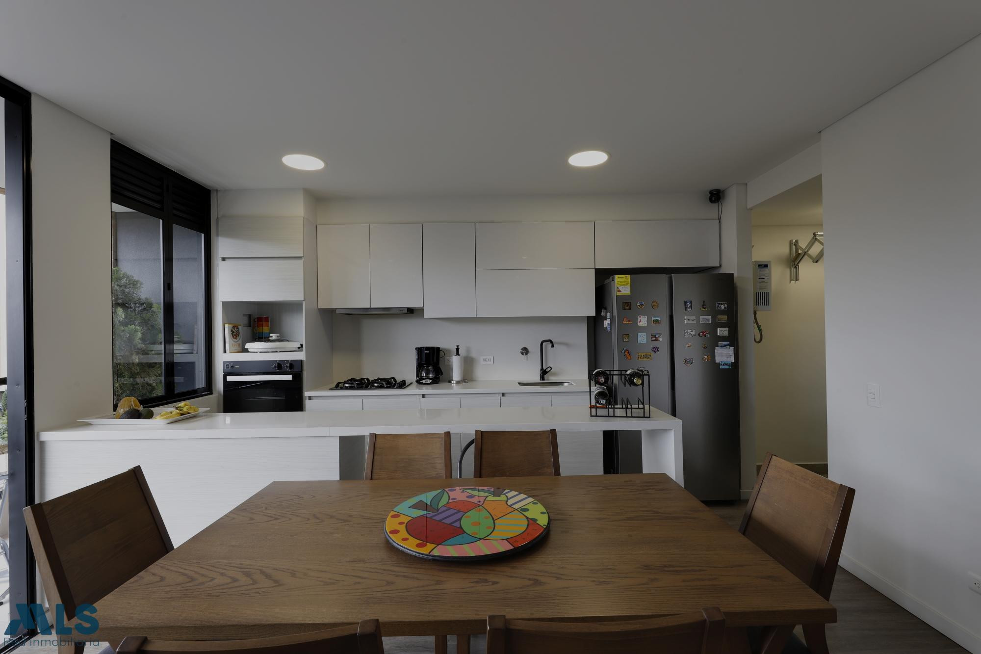 Hermoso y calido apartamento con finos acabados, su altura piso techo de 2,50mtr de altura lo hace resaltar por su amplitud. Cuenta con dos habitaciones ambas con su baños privado . La cocina se integra con el amplio balcon y que tambien se integra con la zona social.