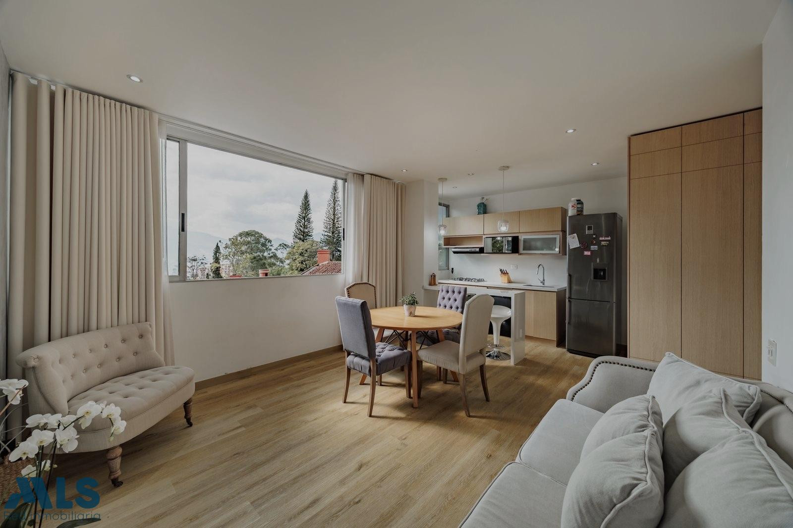 Hermoso apartaestudio ubicado en zona privilegiada de El Poblado ya que es de fácil acceso y con mucha tranquilidad rodeado del verde característico de Medellín; haciendo de este edificio uno de los mas apetecidos del Poblado. Diseño industrial con vista verde. Sus 51m2 están distribuidos en un cómodo salón comedor que se integra a la cocina a través de barra americana, baño social y una alcoba independiente con baño y vestier. 1 parqueadero sencillo y 1 cuarto útil. El edificio está compuesto por muy buenas zonas comunes como rooftop con piscina, gimnnasio, lobby cancha de squash y turco.