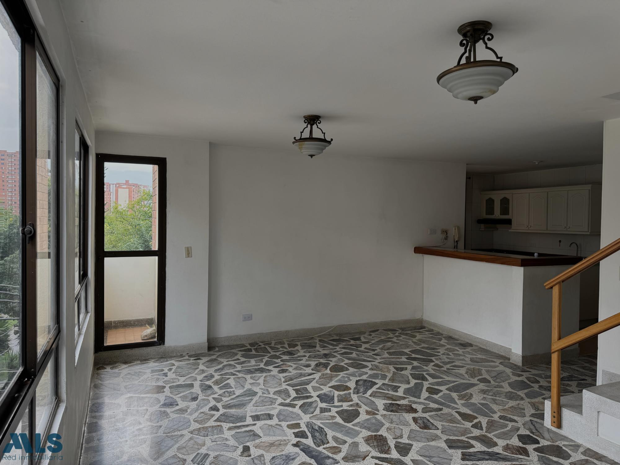 Apartamento Duplex, en el primer nivel dispone de sala comedor, cocina abierta, baño social, habitación de servicio con baño, zona de ropa y un pequeño balcon. En el segundo nivel cuenta con tres habitaciones: la principal con baño, vestier y closet, las dos auxiliares con closet y una de ellas con un pequeño balcón, un baño. Además, dispone de un parqueadero. El edificio cuenta con ascensor.