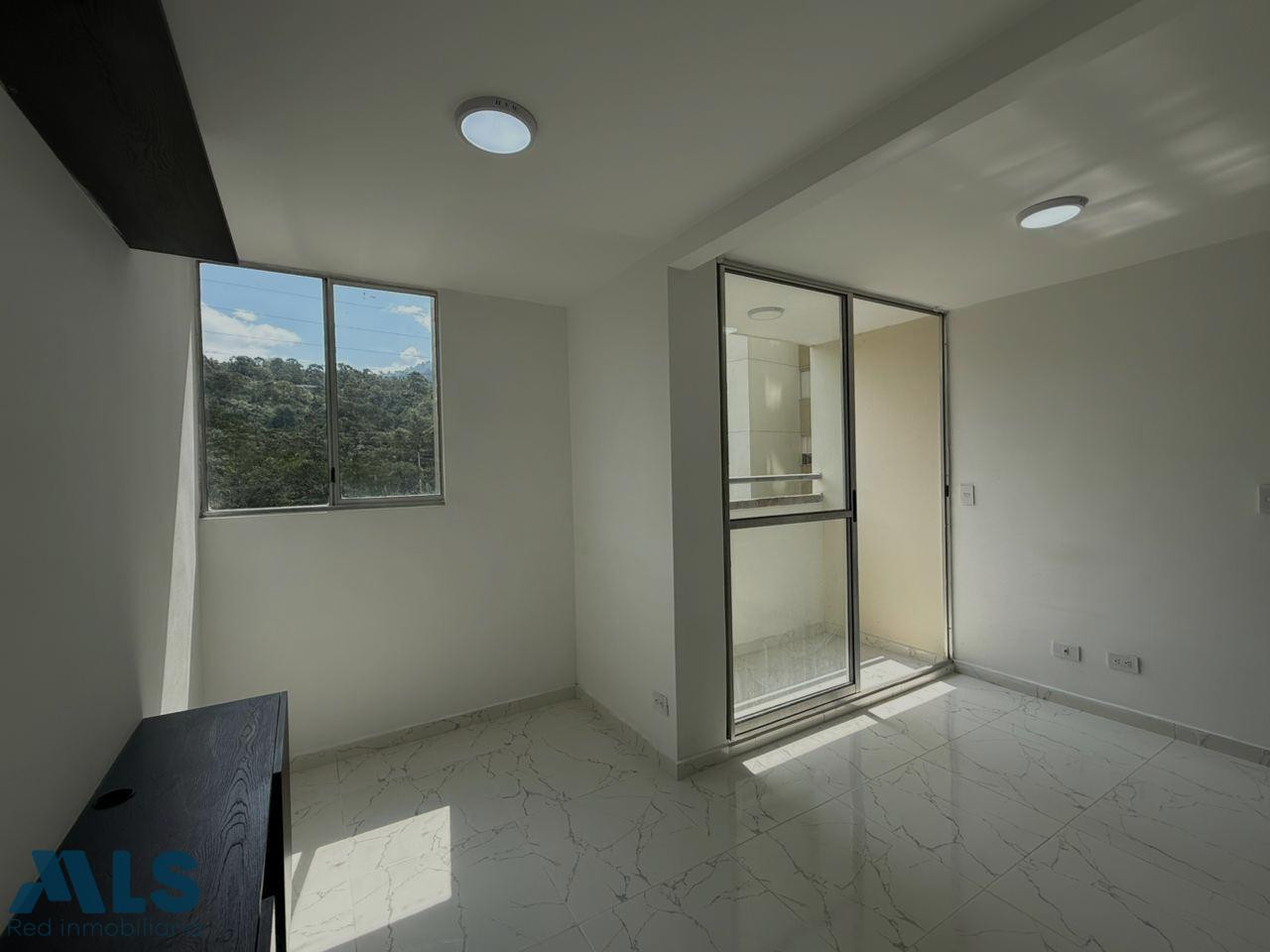 Si te gusta la vista tranquila, verde y a la montaña, este apartamento es para ti, excelente distribucion, 2 habitaciones, estudio con posibilidad de tercera, principal con baño privado, cocina abierta con barra y espacios para almacenamiento, zona de ropas ventilada, baño social completo, salón comedor y balcón. Unidad con completas zonas comunes, piscina de niños y adultos, gym, salón social, juegos infantiles, zona de mascotas, portería 24/7, no tiene parqueadero privado, son comunes. Unidad de solo dos torres.