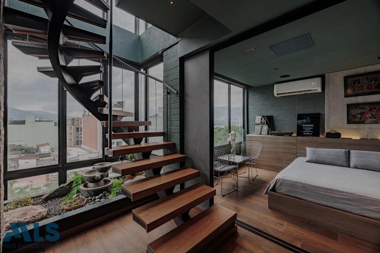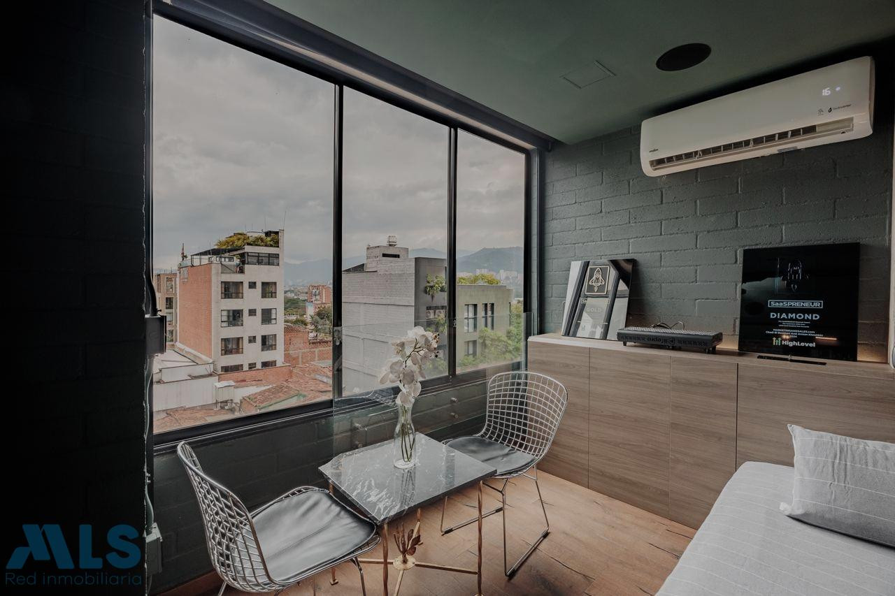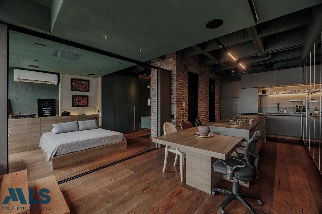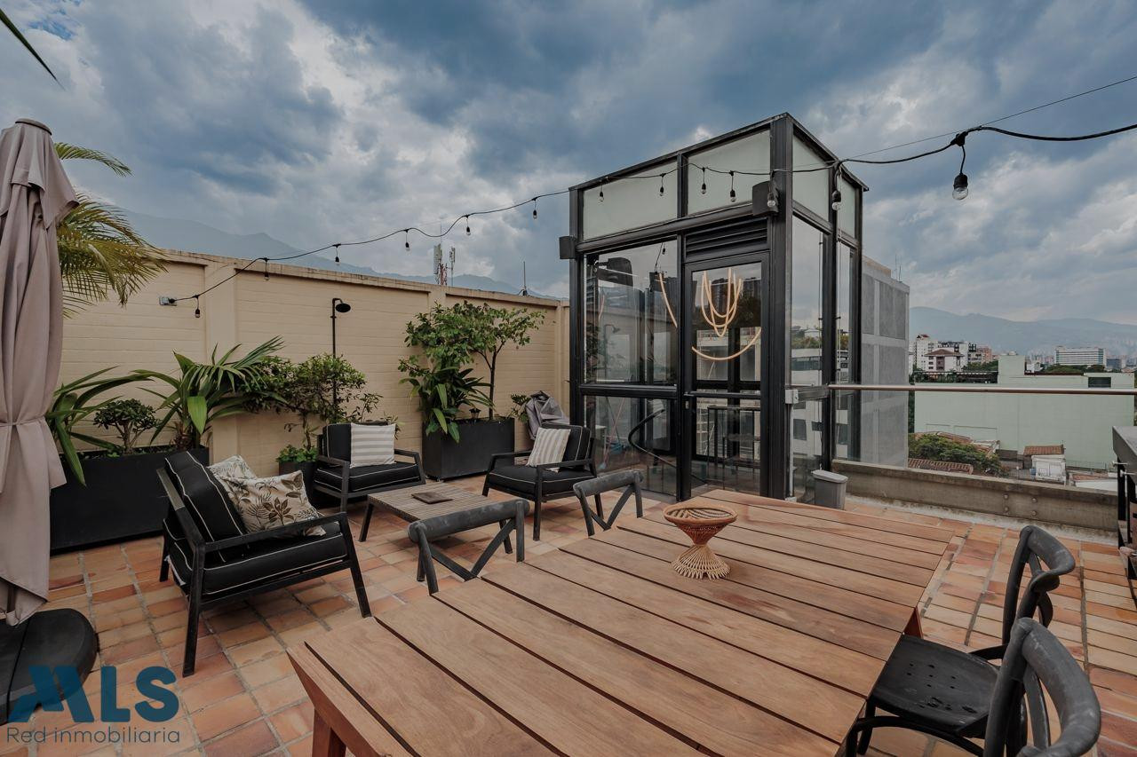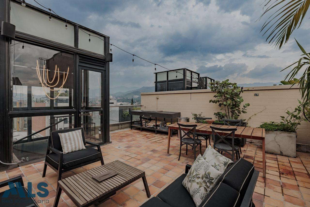 Poblado, Manila Aparta Loft en Venta con terraza (amoblado) Area 102 mt2 distribuidos asi: 57 mt2 privada cubierta y 45 privada descubierta Aparta Loft con tecnología inteligente, jardin Zen, closet amplio, zona de ropas, coffee station. baño, una alcoba Edificio con porteria 24 horas, sauna, turco, parqueadero de vístanles.