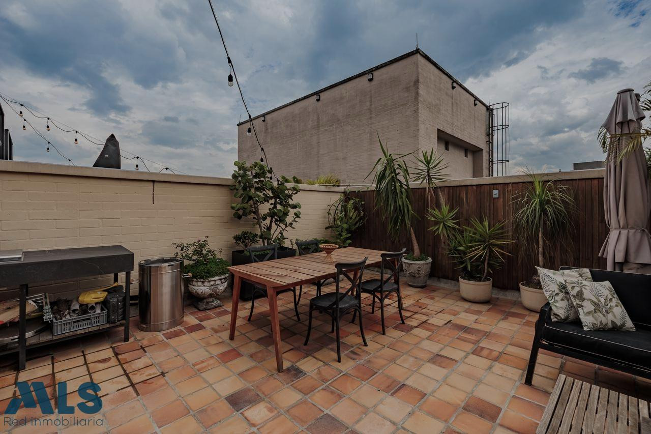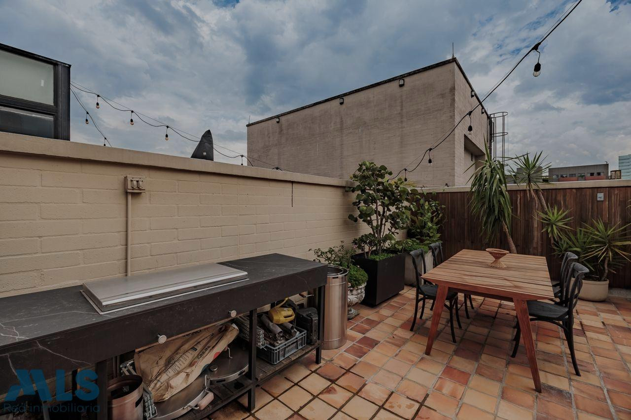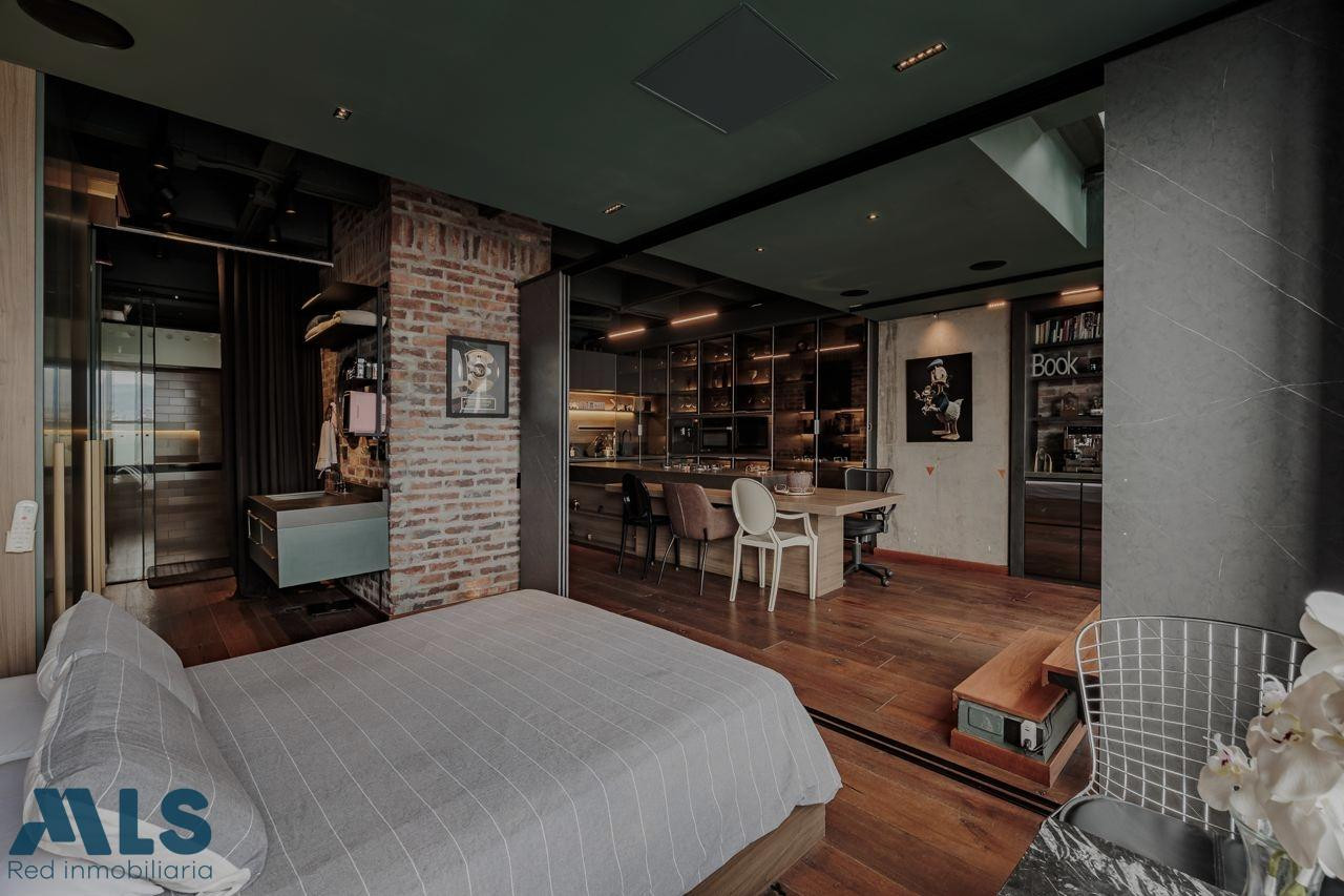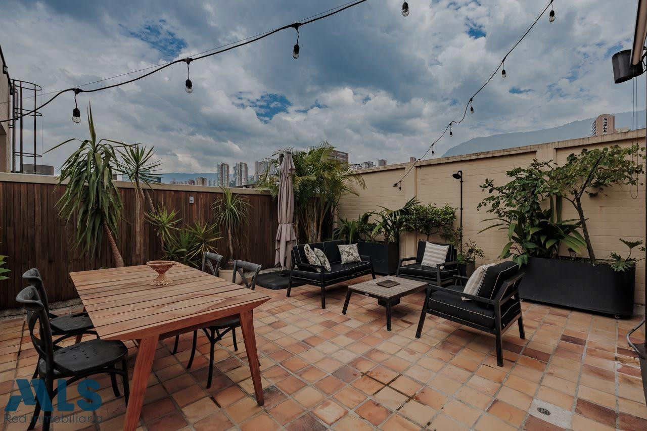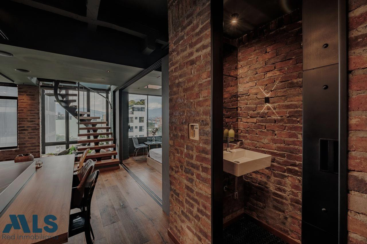 Poblado, Manila Aparta Loft en Venta con terraza (amoblado) Area 102 mt2 distribuidos asi: 57 mt2 privada cubierta y 45 privada descubierta Aparta Loft con tecnología inteligente, jardin Zen, closet amplio, zona de ropas, coffee station. baño, una alcoba Edificio con porteria 24 horas, sauna, turco, parqueadero de vístanles.