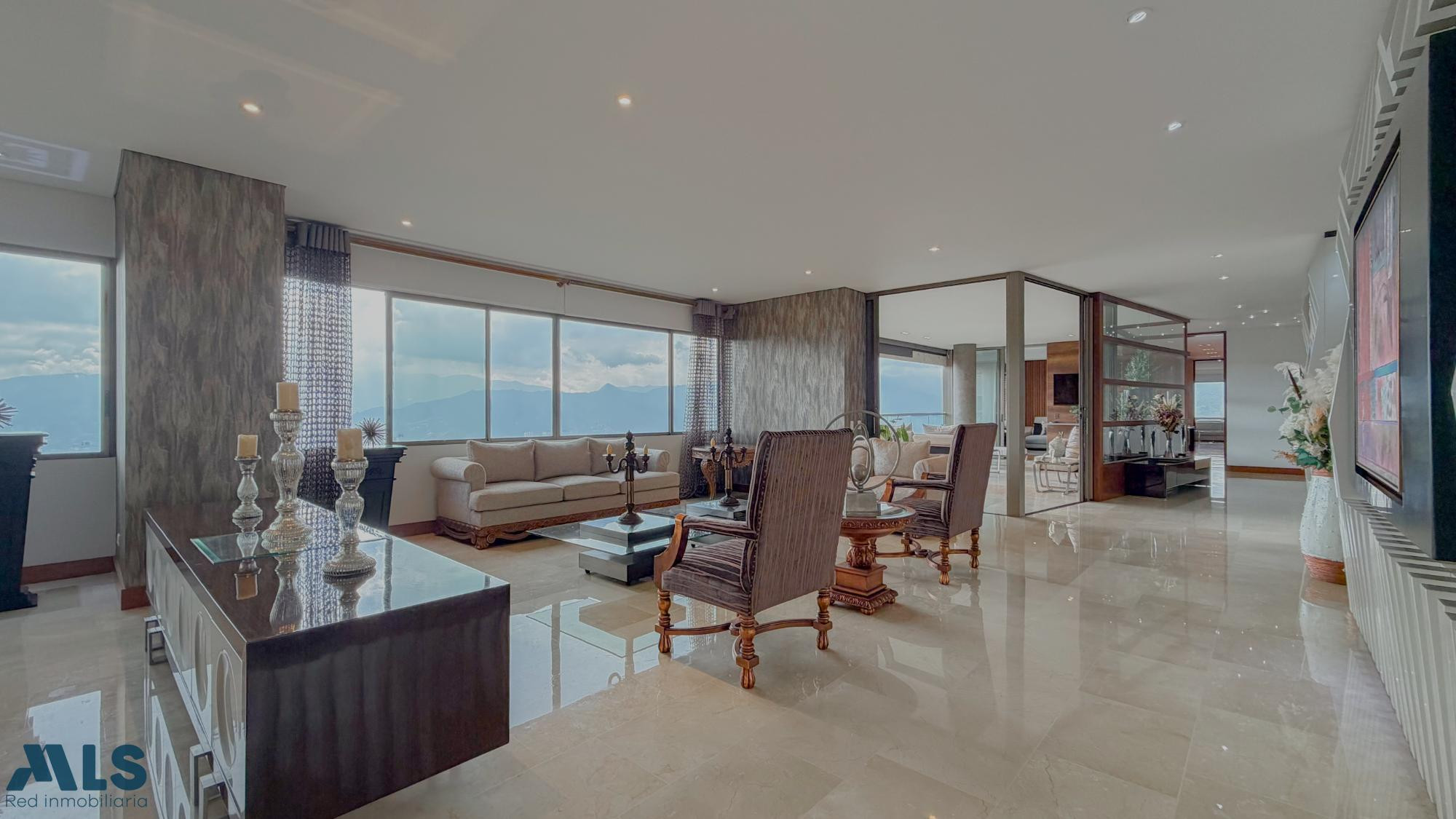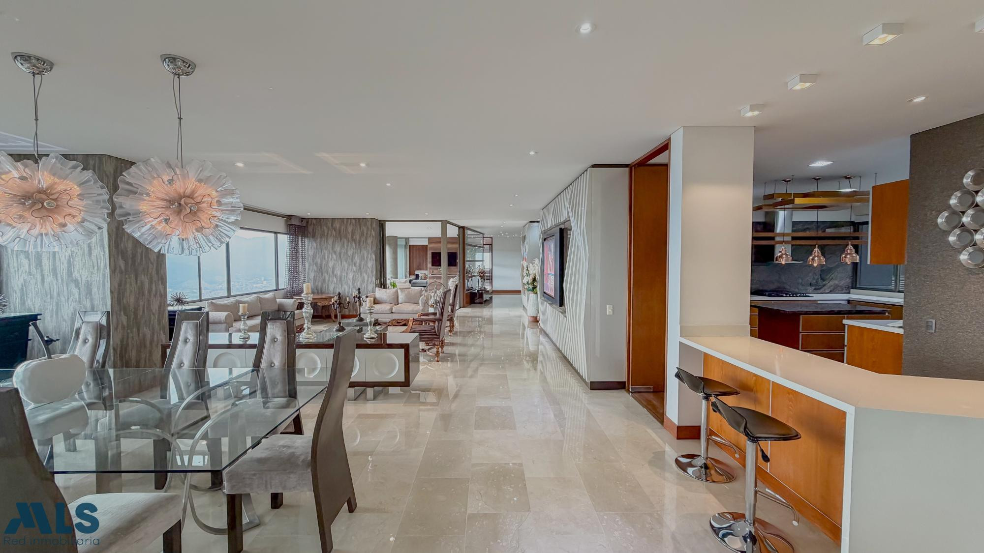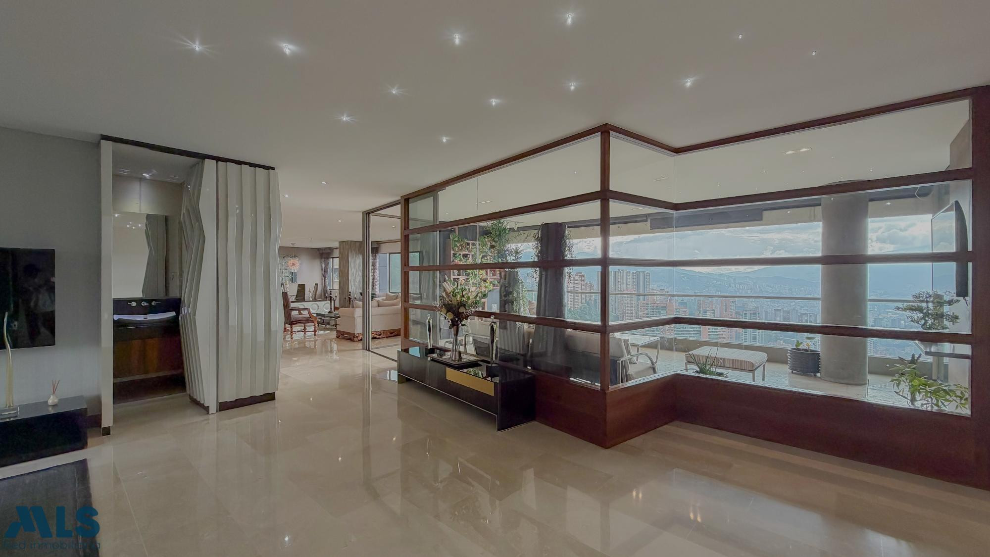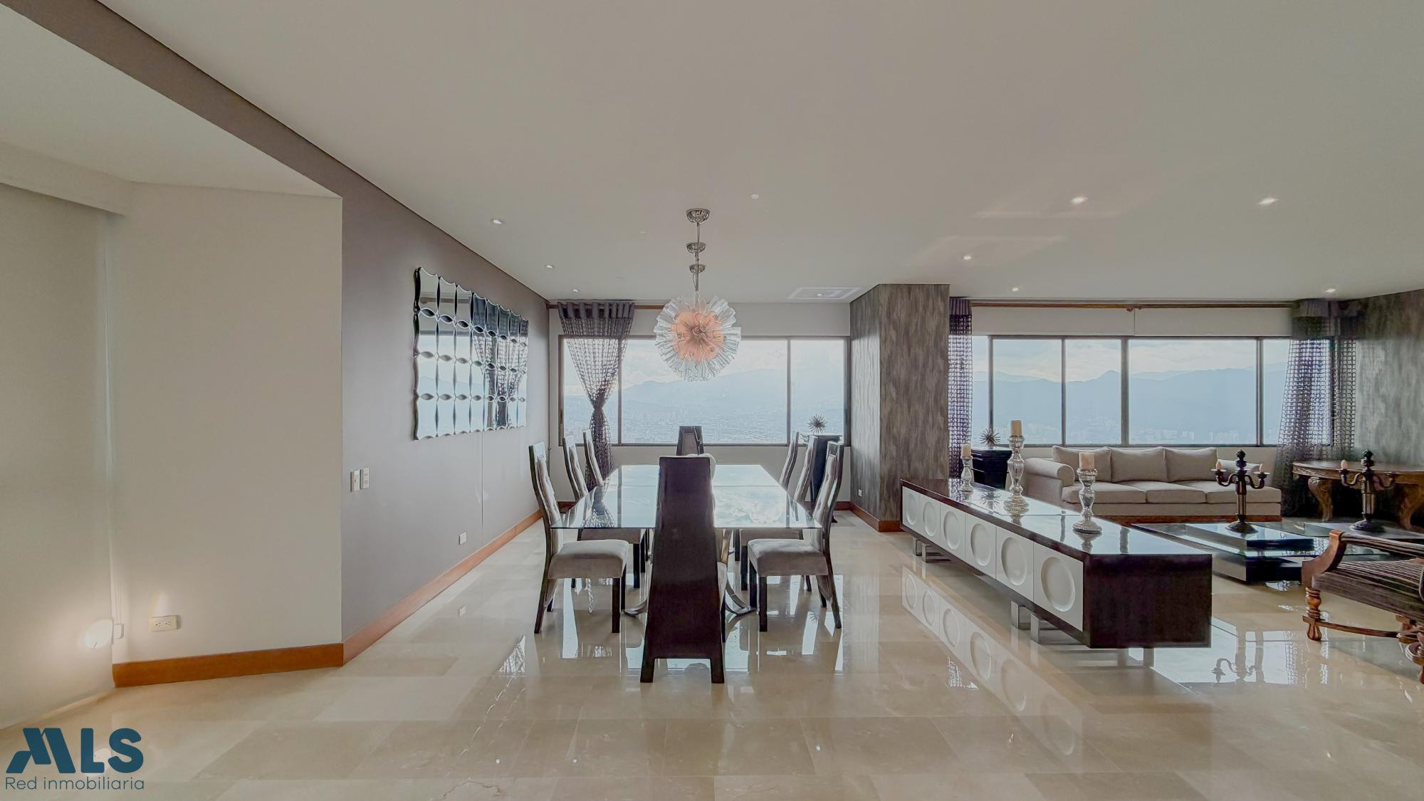 Espacios muy amplios perfectos para las grandes familias! Esta propiedad te regala de las mejor vista a la ciudad, ya que se encuentra ubicado en un piso muy alto y la ubicación de la unidad en la parte alta del poblado hace que se aprecie una vista inigualable. La propiedad cuenta con 4 habitaciones, cada una con su baño, adicional a estudio y oficina. Un amplio balcón tipo terraza, baño social, doble sala, cocina cerrada, bar, alacena, baño social y alcoba de servicio. La unidad cuenta con zonas comunes completas y la propiedad con 4 parqueaderos independientes y 2 cuartos útiles. Te invito a visitarlo