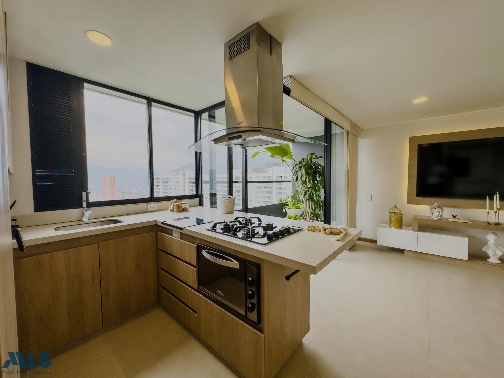 Hermoso apartamento, moderno y con una increíble vista a la ciudad. Son 97mts. Salón comedor, balcón, cocina abierta con barra americana, zona de ropas, baño social, estudio, closet de linos y 3 habitaciones, principal con baño y vestier. Cuenta con iluminación natural en todos sus espacios. 2 parqueaderos + útil. La unidad es una de las más completas del sector con amenities para grandes y chicos.