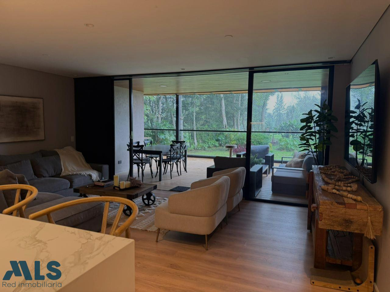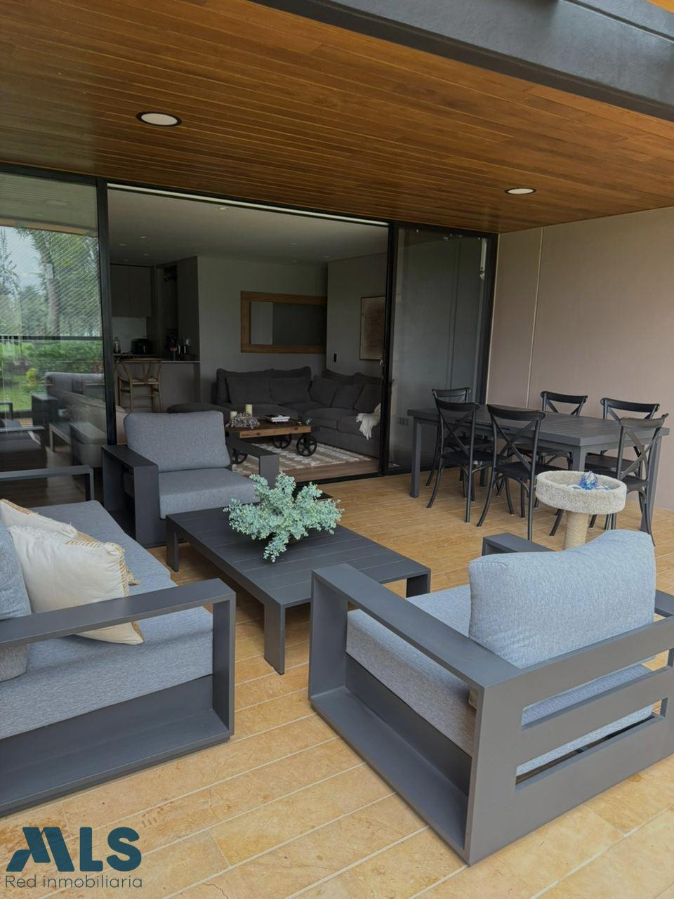 apartamento de 170 metros con amplia terraza cubierta. vista a los campos de golf del club campestre. 3 habitaciones con baño y vestier en al principal. en la habitacion principal tiene acceso a la amplia terraza. cocina abierta con excelentes acabados. 2 parqueaderos paralelos con cuarto útil. cuarto de servicio. pisos en madera . vista hacia los jardines del club campestre. amplia sala y comedor.