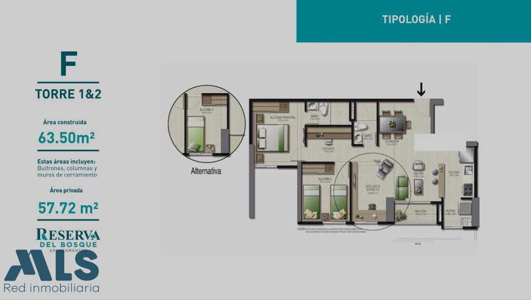 "Hermoso apto arrendado en Itagüí en unidad completa Este apto en un primer nivel cuenta con 63,5 + 26 metros de terraza, 2 habitaciones, 2 baños completos, parqueadero y cuarto útil. La unidad cuenta con 5.000 m2 de reserva forestal. Son 2 torres de 30 pisos. Zonas comunes de la unidad: Piscina, cancha futbol, zona mascotas, salon social, juegos infantiles, gimnasio. La unidad se encuentra ubicada en Fátima a dos cuadras del parque principal, cerca a tranasporte público, supermercados, centros comerciales, colegios, bancos, una futura estación del metroplus. Está arrendado hasta diciembre, en $1.785.604 con Bemsa, por lo cual es perfecto para inversionista. Admon: $370,000 Predial: $723,800 anual"