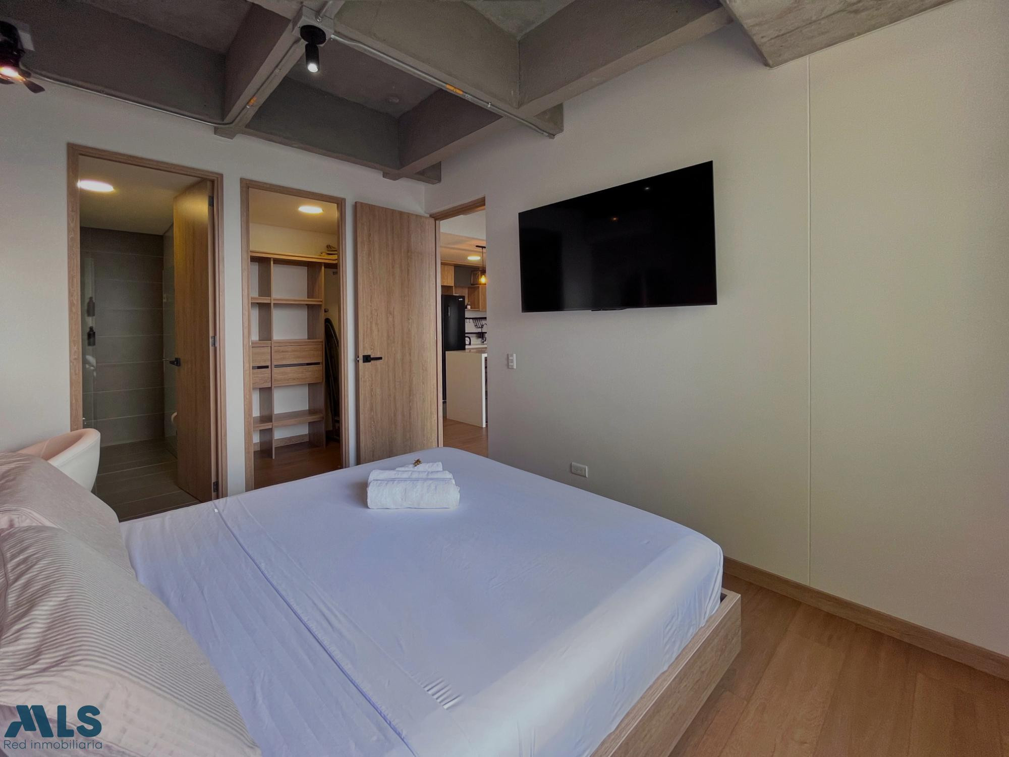 Apartamento totalmente amoblado con licencia para alquilar por dias a 5 minutos del parque principal de Envigado. 71m2 de habitación principal con baño y vestier, habitación auxiliar con baño y vestier, cocina abierta, zona de ropas independiente, sala - comedor, balcón, parqueadero y cuarto útil. piso alto con una vista espectacular. Ubicación exclusiva, ideal para viajes de negocios o placer, al lado del Centro comercial City Plaza. Unidad con Terraza, solarium, salón Social, lobby, gimnasio y coworking.