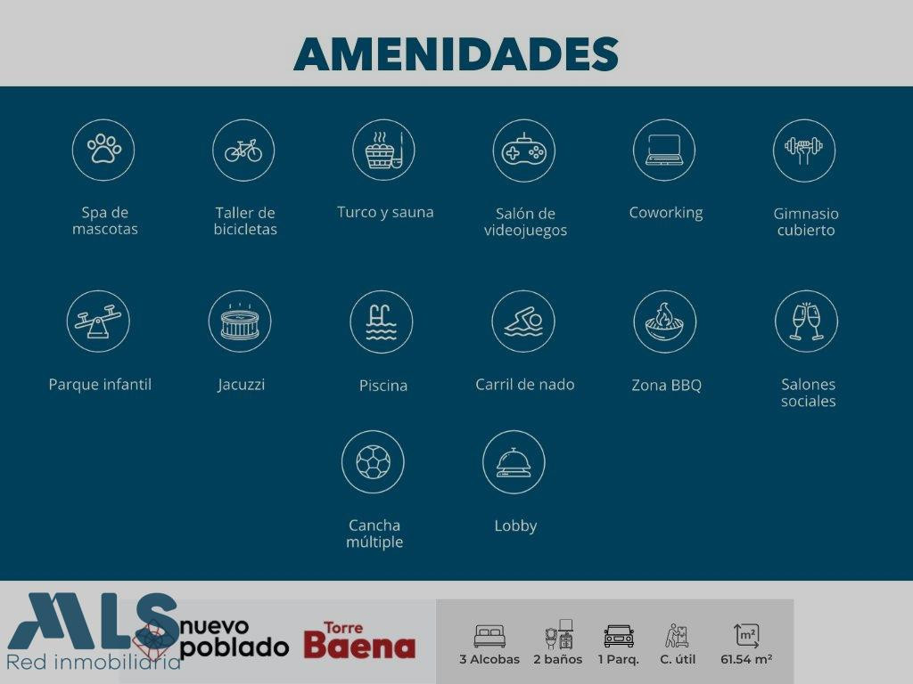 Si estás buscando una excelente oportunidad de inversión o tu próximo hogar en una zona estratégica del sur del Valle de Aburrá, esta cesión de derechos en Nuevo Poblado es para ti CARACTERÍSTICAS DEL APARTAMENTO 3 habitaciones 2 baños Balcón con excelente altura y vista Sala – comedor con distribución funcional Cocina integral Parqueadero incluido Cuarto útil Entrega en acabados básicos Excelente iluminación natural Fecha estimada de entrega Segundo Semestre 2027 Un apartamento moderno, funcional y con gran potencial de valorización por su ubicación estratégica. ZONAS COMUNES QUE MARCAN LA DIFERENCIA Piscina para adultos y niños - Gimnasio dotado - Salón social - Zona BBQ - Zonas verdes - Sauna y turco - Espacios de coworking - Zona para mascotas- Juegos infantiles Esta es una excelente oportunidad para invertir antes de entrega y aprovechar la valorización del sector