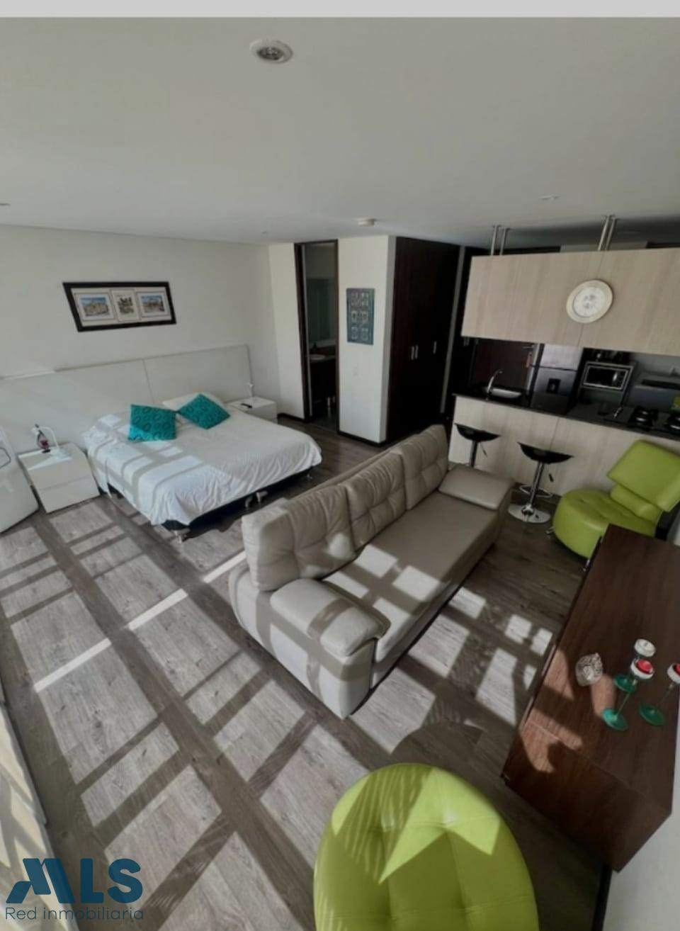 Excelente apartasuits, llano grande, doble uso, puedes vivir o puede manejarlo el operador. Permite rentas cortas. area construida 35 metros, espacio concepto loft, sala comedor, habitación, cocina abierta, baño completo, un parqueadero. Es un concepto hotelero, la unidad cuenta con portería, juegos para niños, piscina, solárium, gimnasio, salón social, y restaurante para quien lo desee, el costo de la administración que es de 575.000 incluye el agua, servicio de tv, camareras que organicen el apartamento salvo fines de semanas, lencería y toallas.