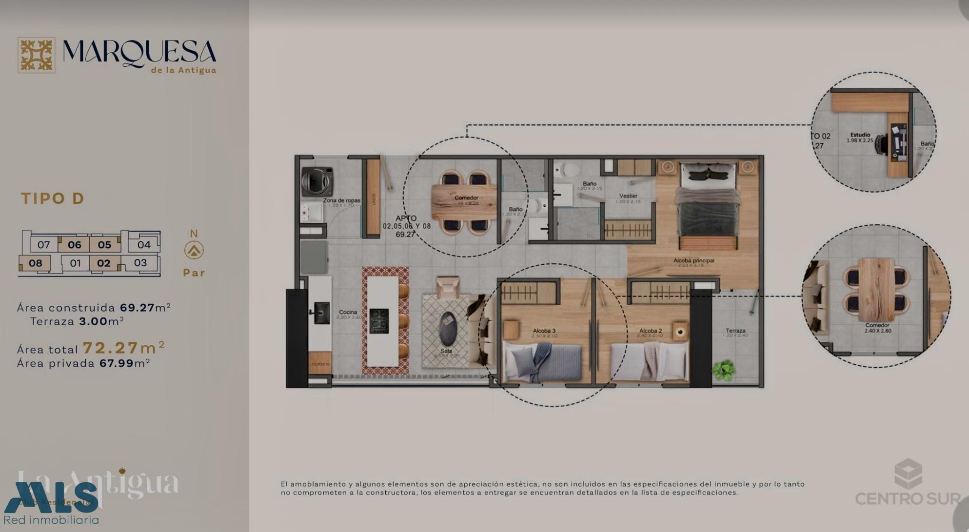 Cesion de derechos en el proyecto Marquesa de La Antigua: Entrega en 2028 apartamento en piso 12 con vista despejada e iluminada, 3 alcobas, 2 baños y alcoba principla con vestier y baño privado. Se entrega full acabados y listo para habitar, compara con el precio de sala está en $605millones, lo que el precio actual representa un descuento de $40millones sobre el precio de la constructora. Adicional incluye parqueadero y cuarto util en una urbanización con zonas comunes completas y equipadas.
