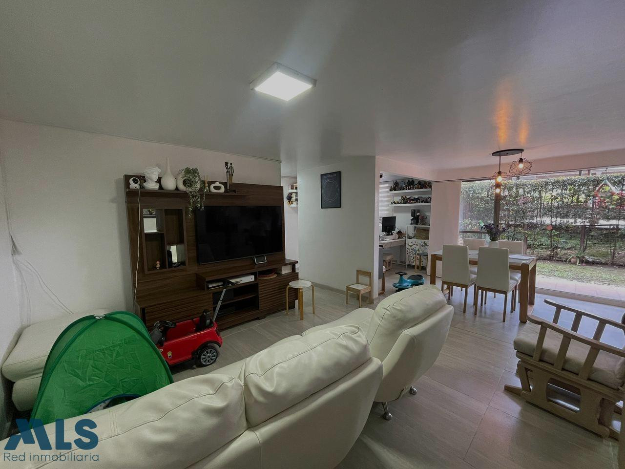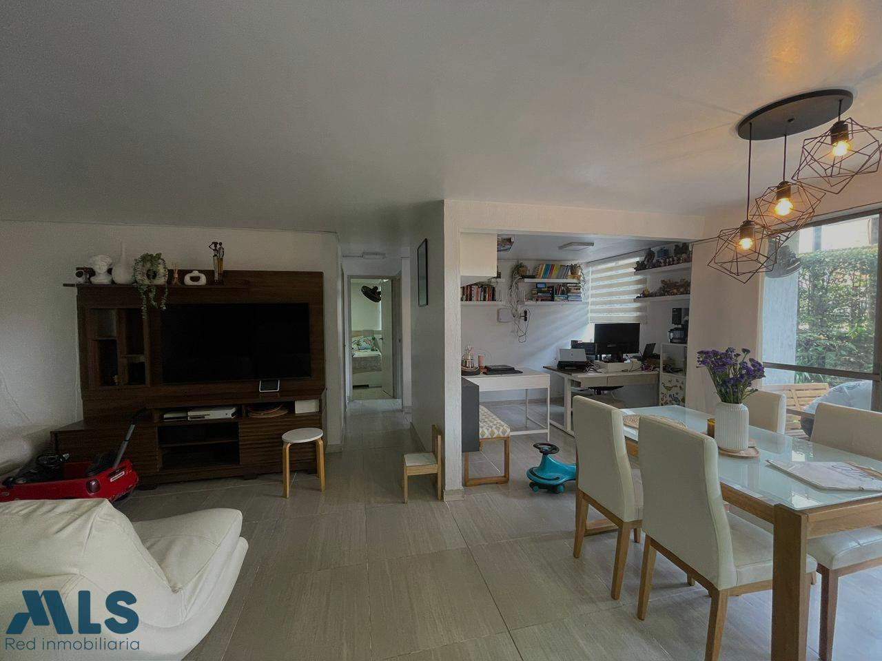 Acogedor apartamento en venta en el sector de Sabaneta. Primer piso con terraza de 64 m2 de uso exclusivo del apartamento. El área construida del apartamento es de 79,80 m2 y ofrece 2 alcobas + estudio (originalmente 3) cocina integral + zona de ropas, sala comedor, 2 baños completos y ofrece parqueadero privado y cuarto útil. Totalmente domotizado. La unidad es completa, ofrece gimnasio, salón social, piscinas, parque infantil, zonas verdes, placa polideportiva, sauna, turco, portería 24 horas, parqueadero de visitantes, minimercado y más. Ubicado a 5 minutos del Hospital Venancio Díaz, INDESA Sur, estación dell metro la Estrella a 7 minutos, parque de Sabaneta, Centro Comercial Aves Marías y mucho más.