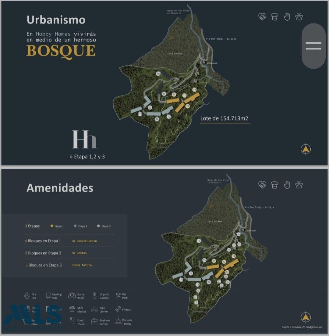 Ubicación estratégica: El Retiro, Antioquia a solo 35min de Medellín, 20min de Indiana Mall y 15min del aeropuerto José Maria Córdova. Área: 54.7mts + 13.62mts de terraza = 68.32mts Habitaciones: 1 Baños: 2 Parqueaderos: Si Cuarto útil: No Piso: 1 Ascensor: Si Estrato: 5 Amenidades: cancha de pádel, mini mercado, servicio de lavandería, gimnasio estilo minimalista cubierto, sitio de fogatas, sitio de lectura, parque de mascotas, sala de juegos, jardín orgánico, parque de picnic, centro de bicicletas, walking trails, cabina de Spa, librería, Food trucks, Coworking. Adicional, tendrá servicios On Demand: - Hobbys: clases de cocina, coctelería, música y yoga - Seguridad: guardería de niños, biblioteca de juegos y objetos, entrenador de perros, guardería de perros y alquiler de bicicletas - Tiempo: Conserje, lavandería, aseo e impresiones - Bienestar: Room Service, verduras y especies orgánicas, mercado, venta de alcohol o madera y Spa. Estilo: FunHome Etapas del proyecto: 3 Torres totales. 8 Características Información adicional: 💰 Precio: $668.786.000 en sala de Ventas 📄 Estado: Cesión derechos 📚Administración: $600.000 aprox. Todavía no se paga