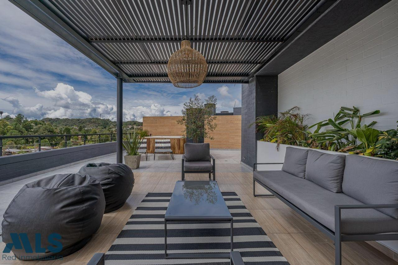 Suite dúplex de lujo de dos alcobas en venta – 197 m² | Altos de Las Palmas Exclusiva suite dúplex de 197 m², ubicada en Altos de Las Palmas, en un entorno natural, silencioso y de alta valorización, a solo 18 minutos del Aeropuerto Internacional José María Córdova. En el primer nivel se encuentra la habitación con vestier y baño privado, además de balcón, cocina moderna con barra americana, acabados contemporáneos, zona de ropas, estudio y baño social con ducha, ofreciendo comodidad total y excelente distribución. El segundo nivel está destinado a una terraza privada con jacuzzi, desde donde se disfruta una vista natural abierta y tranquila, ideal para el descanso y una experiencia premium para el huésped. La suite se entrega completamente equipada, lista para operar en plataformas de renta corta. Un activo inmobiliario que combina diseño, amplitud y alto potencial de rentabilidad. Diseñada para rentas de corto plazo de alto nivel. Ubicación estratégica, espacios generosos y lujo funcional.