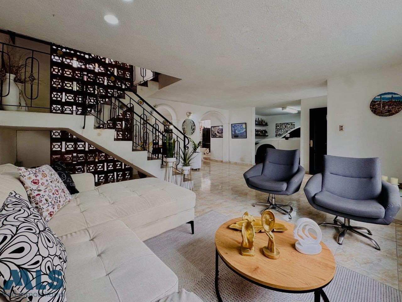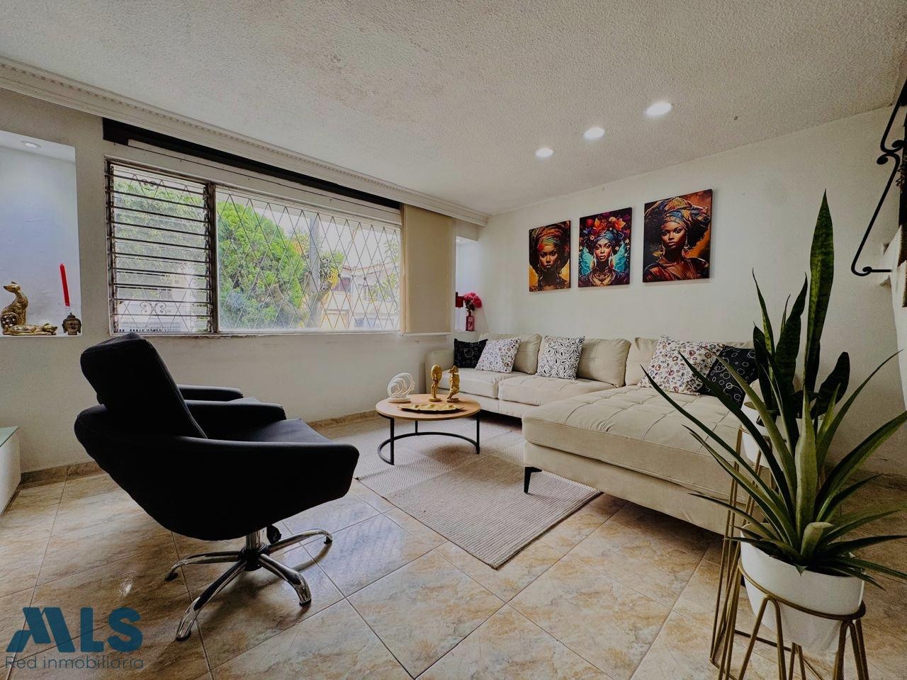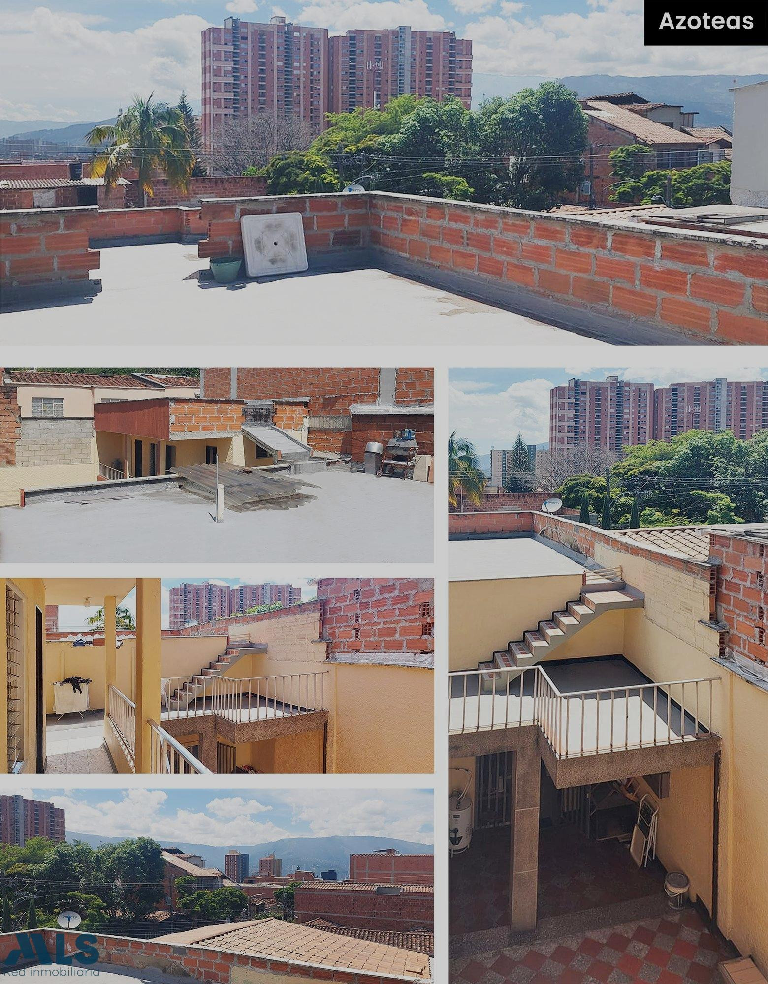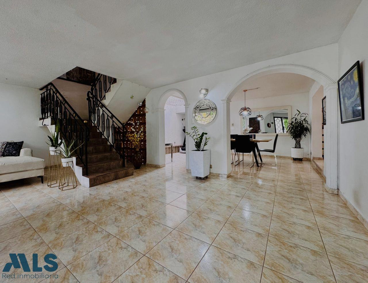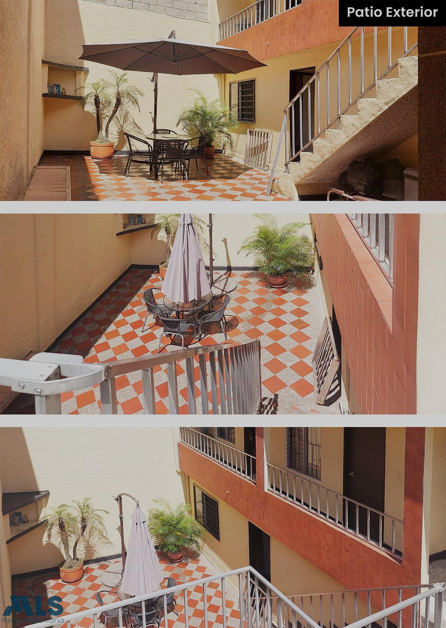2 niveles: en el primer nivel: sala y comedor, cocina integral, 5 alcobas cada una con closet, 2 patios, 2 baños completos, estudio, zona ropas amplia, garaje sencillo, 2 nivel: apartamento de 2 alcobas, salón comedor, patio, cocina integral, zona ropas, terraza que queda en el tercer piso