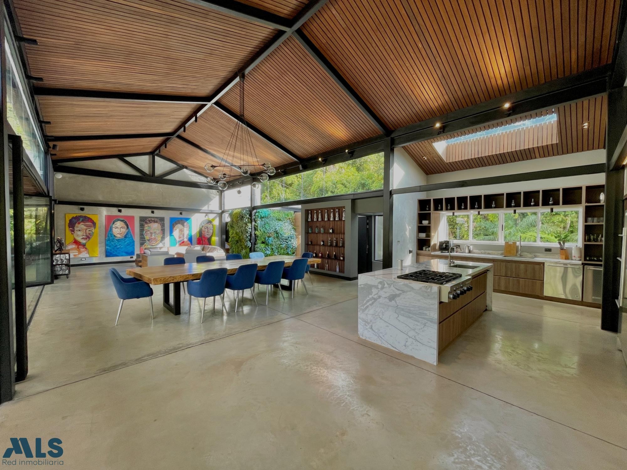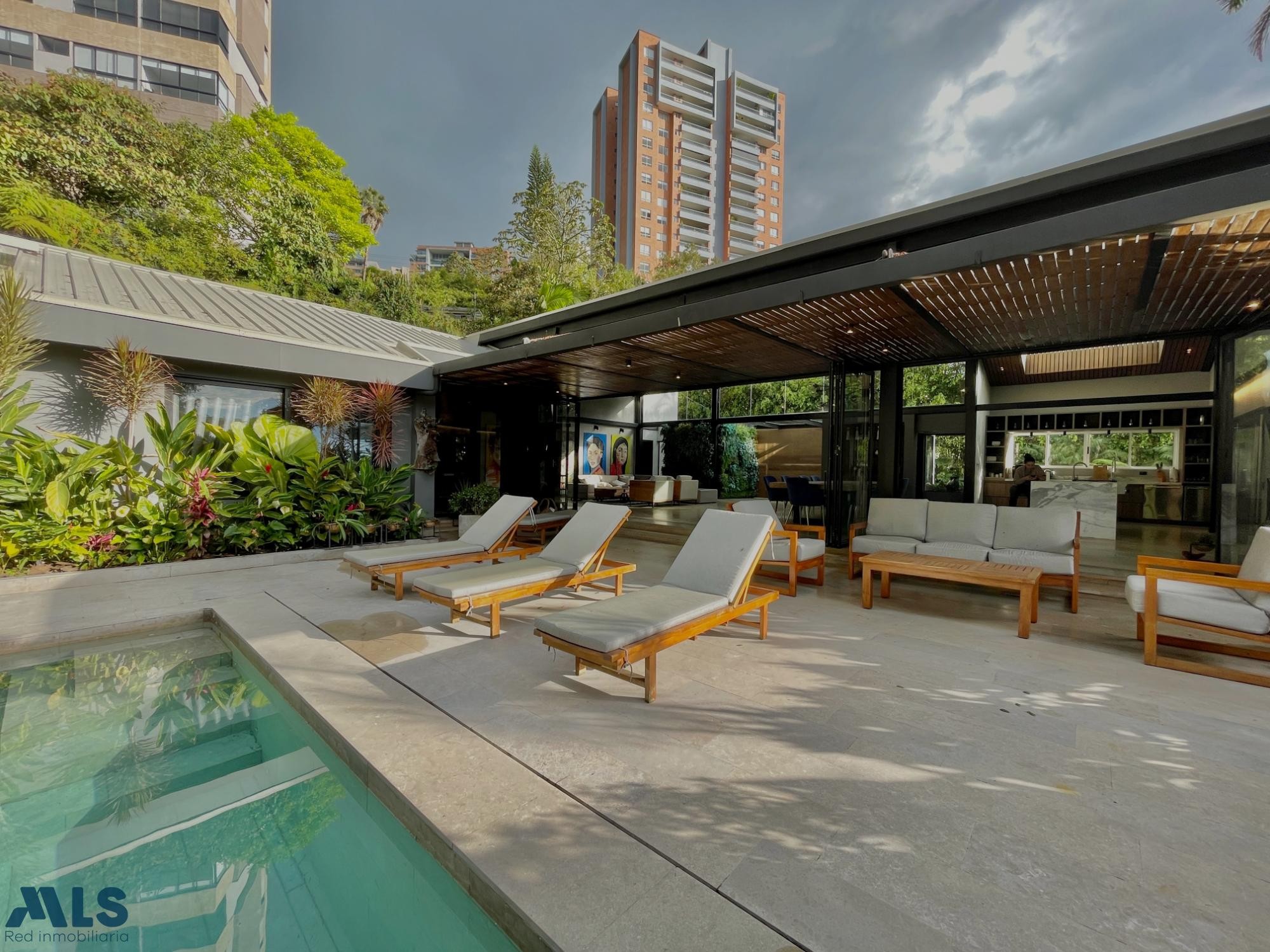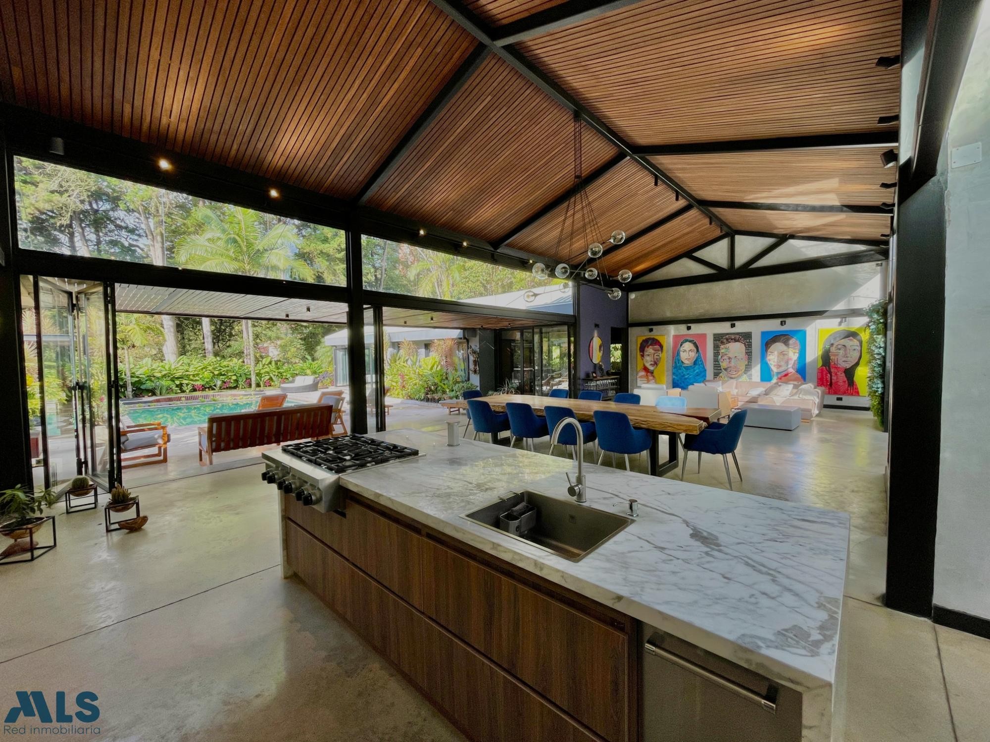 Espectacular casa de 733 m² construidos en un lote de 1.549 m², ubicada en el exclusivo sector de El Tesoro, dentro de la ciudad, con acceso rápido a servicios, centros comerciales y vías principales. Fue completamente remodelada hace 4 años y cuenta con un diseño moderno, estructura metálica y acabados de lujo. Tiene 5 habitaciones + alcoba de servicio, sala de cine privada, gimnasio, habitación de huéspedes independiente y zona BBQ junto a la piscina. Detalles de alto nivel: sistema de sonido Sonos, iluminación dimerizada, aire acondicionado en todas las habitaciones, sanitarios electrónicos, cocina equipada con electrodomésticos KitchenAid, fogón profesional, lavaplatos, máquina de hielo y una gran despensa. Además: cortinas eléctricas, chimenea automática en la habitación principal, techos altos en madera, baños con luz natural, 4 parqueaderos y una imponente puerta principal.