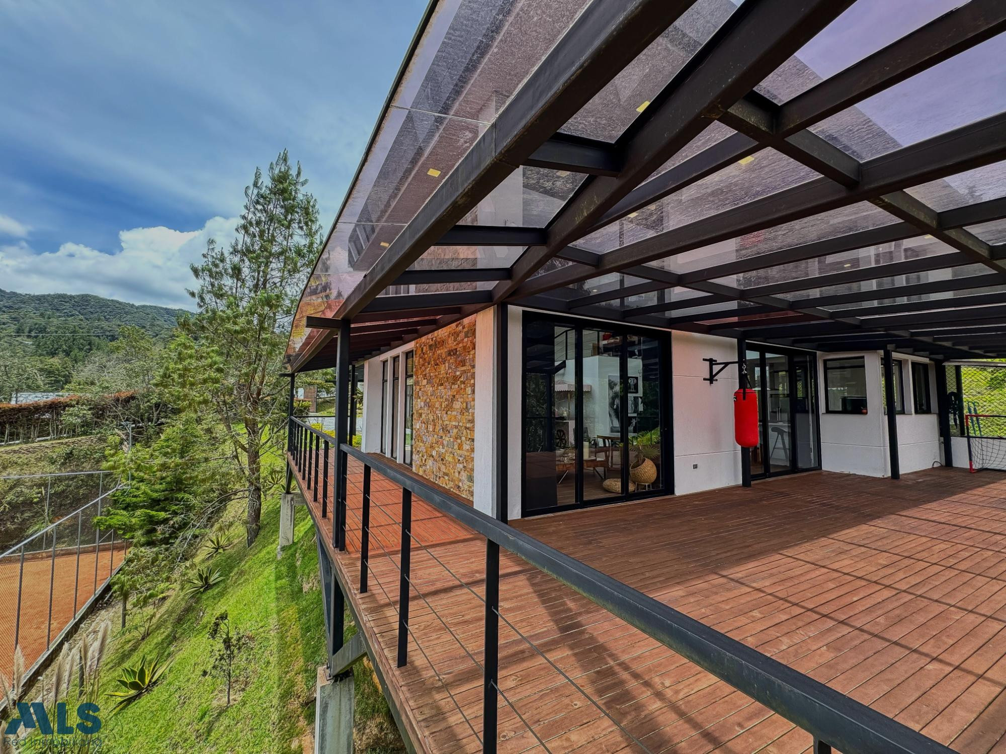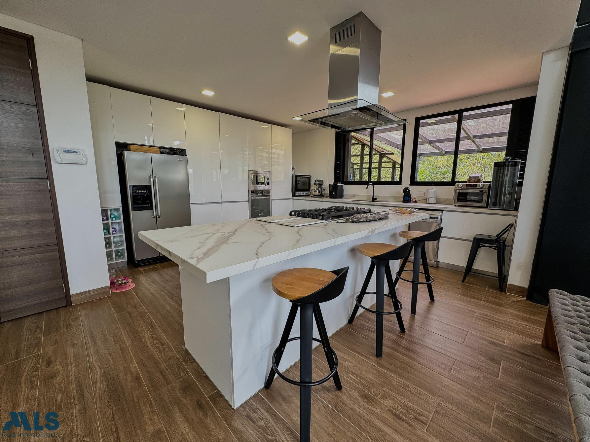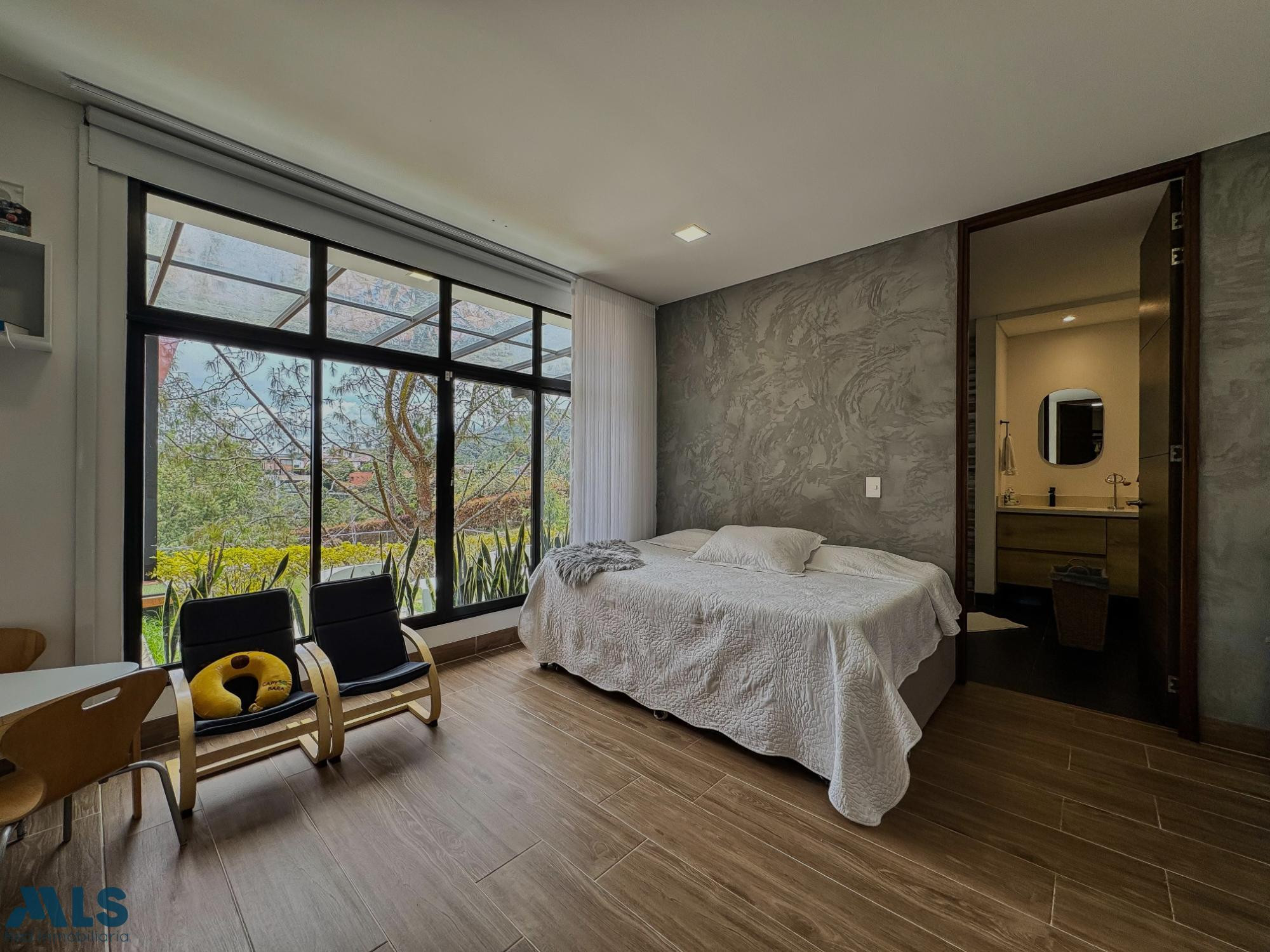 Hermosa y moderna casa en el Alto del Escobero de 300 metros construidos más 100 metros de deck, en un lote de 2.045 metros. La propiedad está ubicada en una parcelación con vigilancia 24 horas y cuenta con 3 habitaciones con baño , la principal y una de las auxiliares con vestier y otra con closet, baño social , cocina abierta y moderna, zona de ropas, sala comedor con doble altura, estudio grande o sala auxiliar en el segundo nivel, deck grande con privacidad y hermosa vista verde y 2 parqueaderos cubiertos.