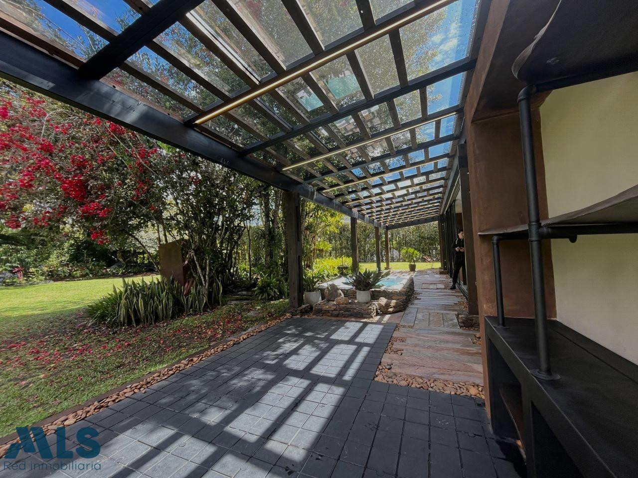 Casa Campestre en Llanogrande de un solo nivel y con jardines diseñados para vivir la calma, la belleza y la conexión con la naturaleza. Ubicación fuera de la línea de los aviones y muy cerca al Club Campestre Llanogrande. 4 habitaciones cada una con baño y vestier y la habitación principal con doble vestier. Todas con acceso directo a la terraza y el jardín. Cocina abierta y amplia alacena. Salón comedor Oficina o estudio Cuarto de servicio completo Cuarto de lavado Cuarto de linos Bodega y cuarto de jardinero 2 baños adicionales Jacuzzi Espacio para acondicionar un gimnasio y zona de BBQ Suministro de agua por EPM, diseño e instalación parcial del sistema de aprovechamiento de aguas lluvias y puzuelo. La Unidad cuenta con: cancha de tennis, cancha de micro fútbol en grama, juegos infantiles y salón social