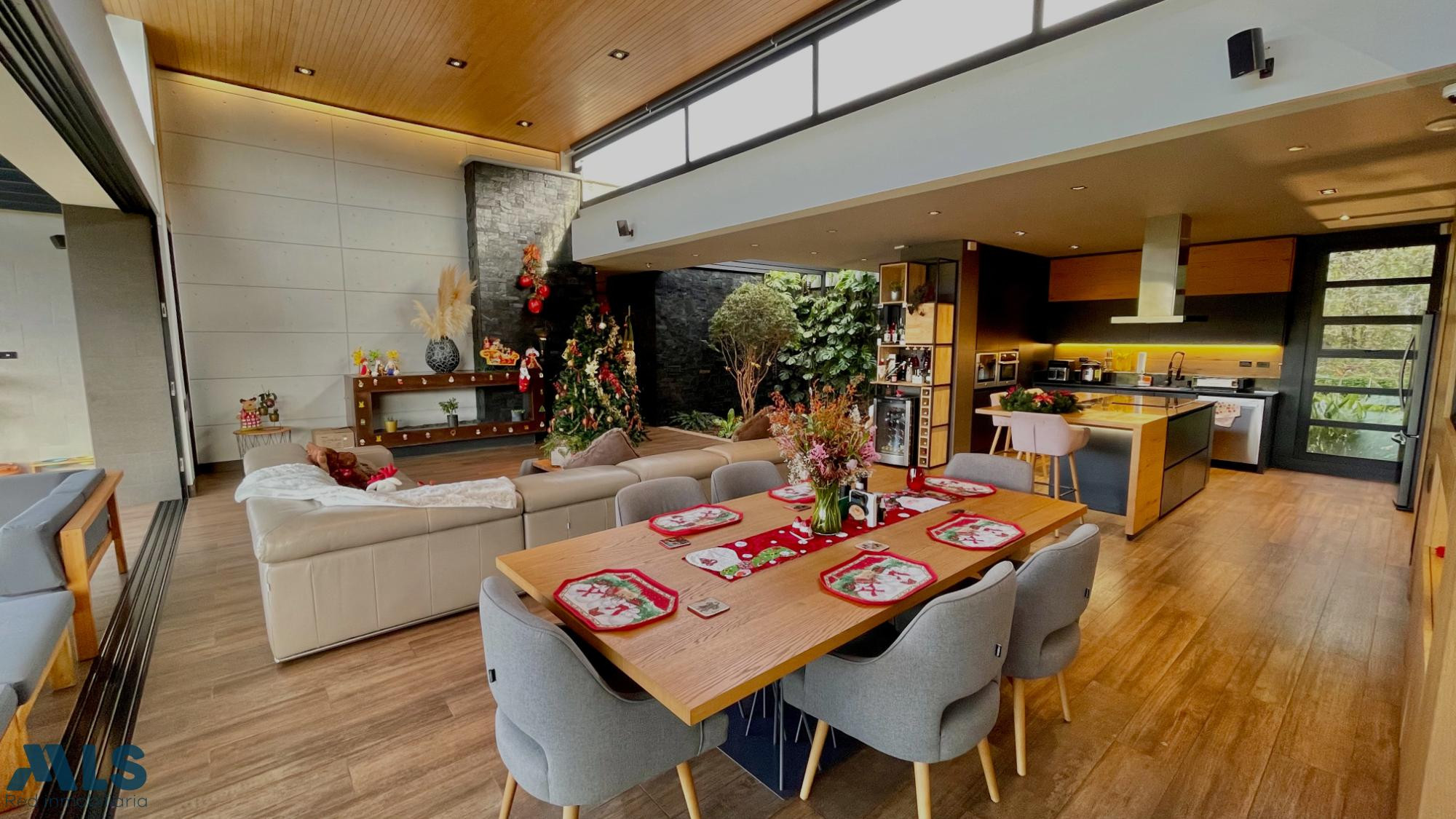 Ubicada en una de las zonas más exclusivas y tranquilas del Alto de Las Palmas, esta espectacular casa de un solo nivel combina arquitectura moderna, tecnología y una conexión auténtica con la naturaleza. Construida en 2019, cuenta con 420 m² de área construida en un lote de 1.600 m² elevado, con vista lejana al bosque y total privacidad. Su diseño aprovecha al máximo la luz natural, con una zona social de gran altura, amplios ventanales y una atmósfera cálida y sofisticada. La propiedad cuenta con 3 habitaciones, cada una con baño y vestier; la principal, de excelente tamaño, ofrece un vestier amplio y un baño de lujo. En el área social, una chimenea moderna, una pecera decorativa y un mini bar crean el ambiente perfecto para disfrutar y compartir. La cocina italiana Into Italy combina elegancia y funcionalidad, mientras que los espacios complementarios incluyen teatro en casa, gimnasio privado y un jacuzzi con carril de nado y motor contracorriente. Está totalmente domotizada, con control inteligente de luces, cortinas, sonido y video, además de paneles solares que cubren el consumo energético de la casa. Ubicada en una parcelación consolidada, cerca del Mall Indiana, D1 y antes del peaje de la Variante de Las Palmas, ofrece acceso rápido, entorno natural y máxima seguridad. Incluye sistema de sonido en toda la casam chapa electrónica y cámaras de seguridad. Como parte de pago se puede recibir un apartamento en El Poblado.