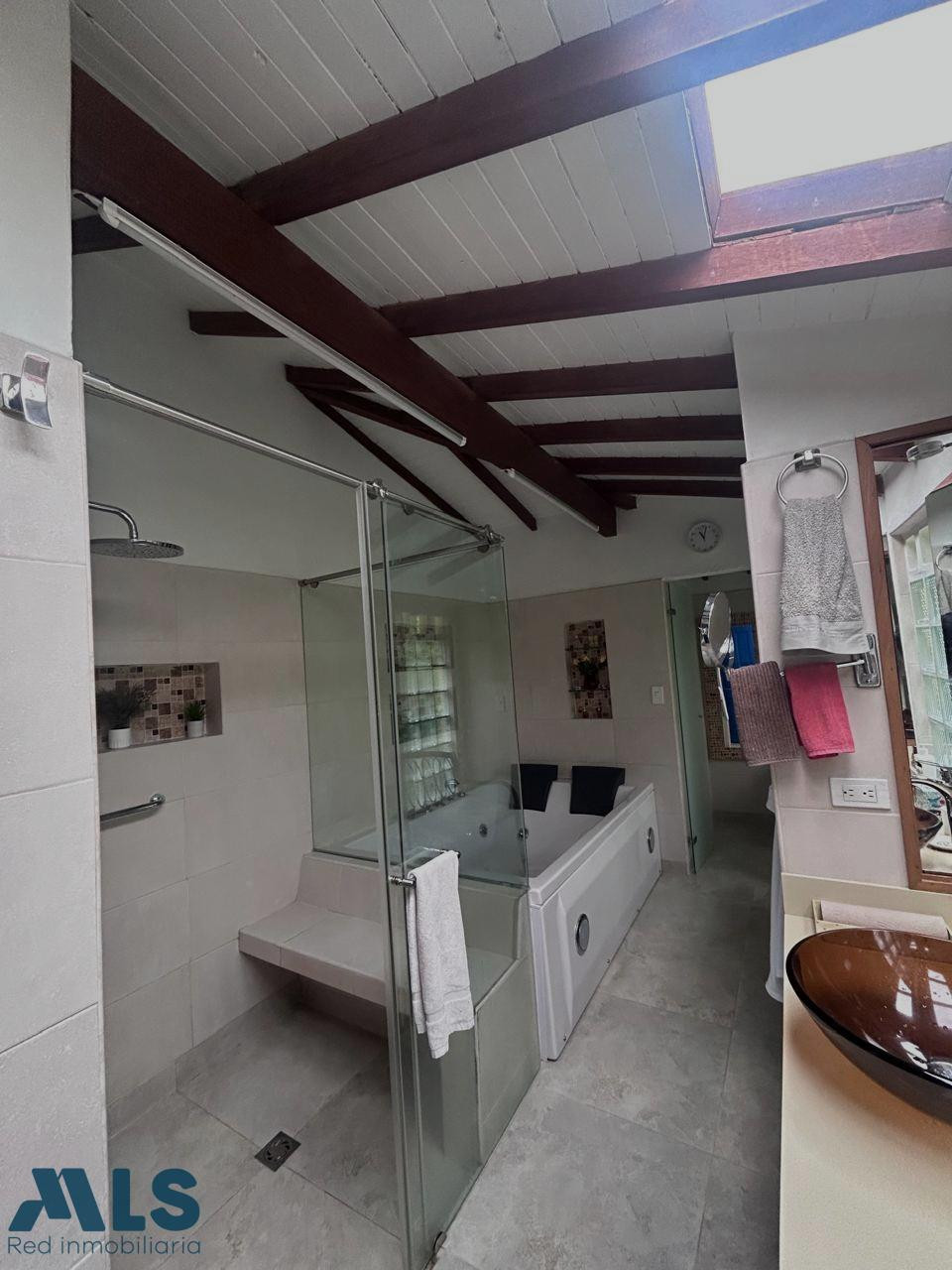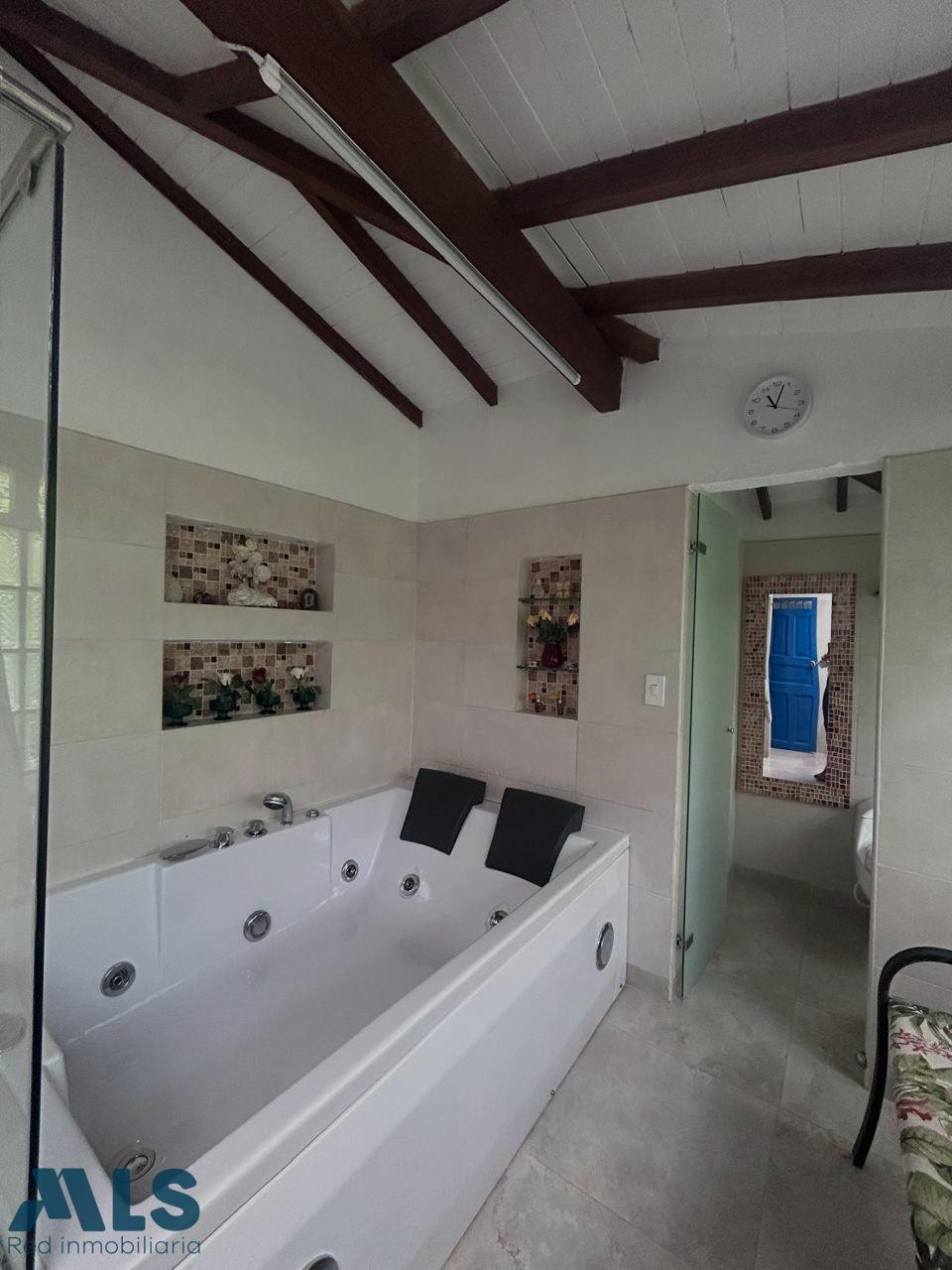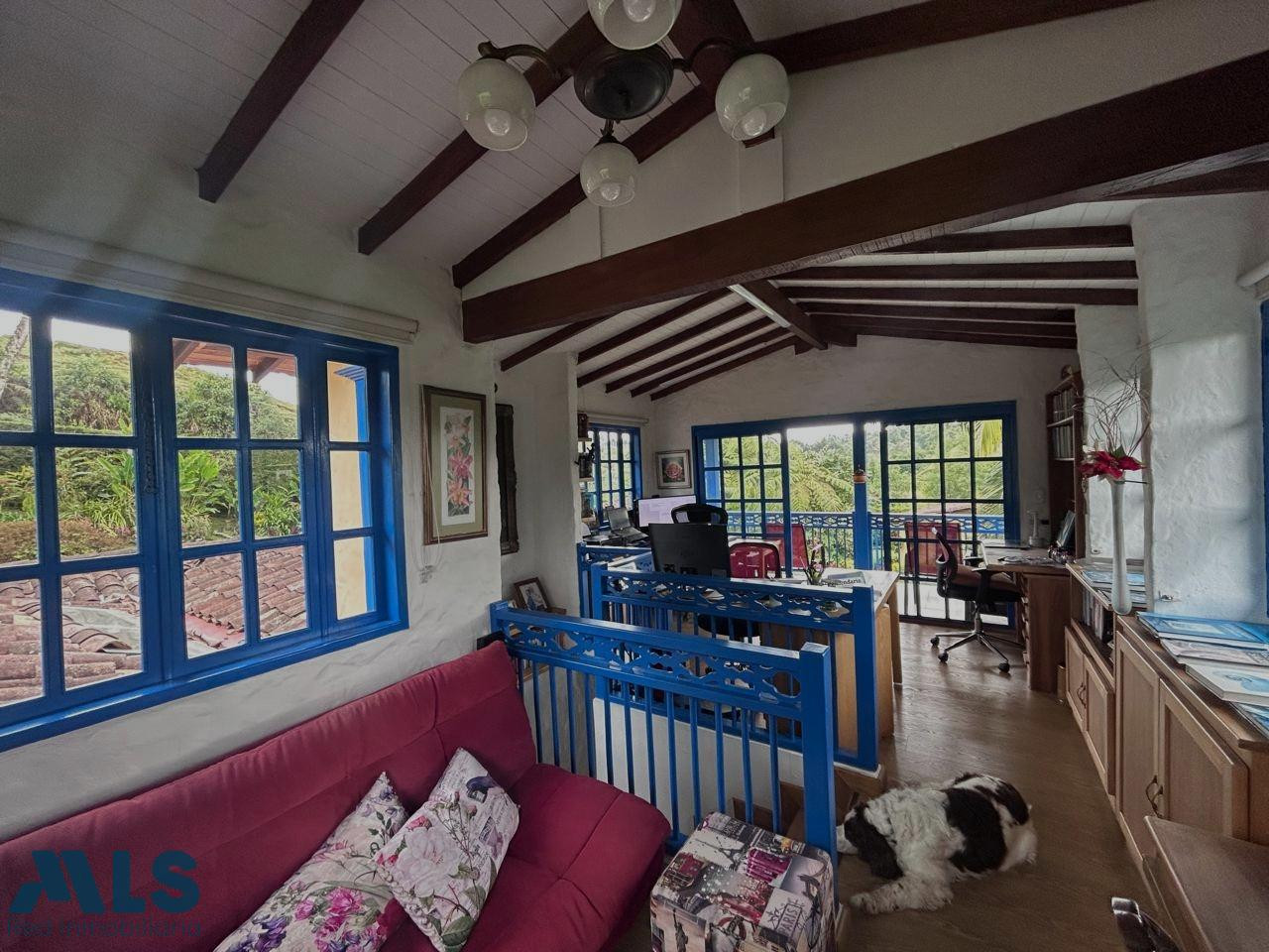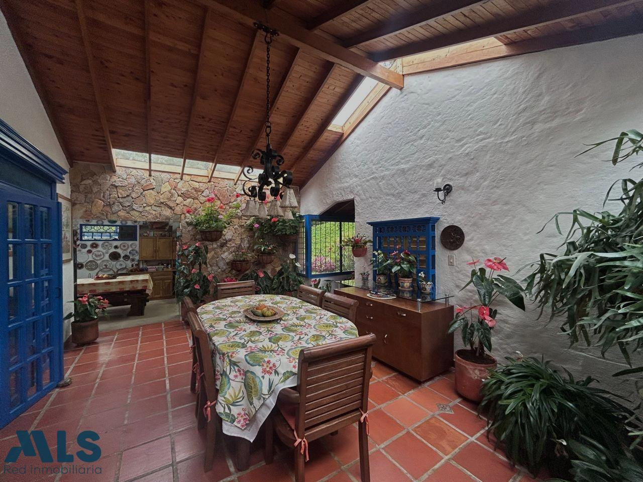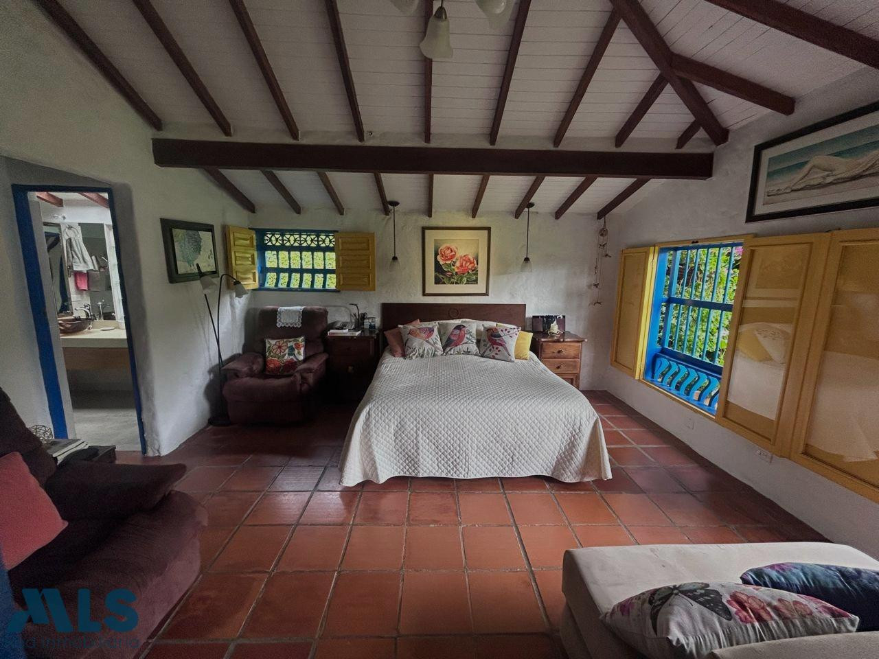 Hermosa casa de campo en venta ubicada en Las Cuchillas de Rionegro, con un área de 11,600 m², ideal para quienes buscan tranquilidad, comodidad y contacto directo con la naturaleza. La casa principal cuenta con 340 m² de construcción, 4 habitaciones, 4 baños, sala, comedor, cocina, terraza, balcón, zona de ropas y jacuzzi, parqueadero cubierto para 2 carros y espacio adicional 10 autos mas. La propiedad ofrece excelente seguridad, con portón eléctrico, cerca eléctrica y cámaras de vigilancia. incluye una casa de mayordomo de 80 m² con 3 habitaciones, sala comedor, baño y un cuarto de herramientas. La propiedad destaca por su belleza natural: una variedad de árboles frutales, dos huertos, un gallinero, una perrera, bosques de bambú, un arroyo con pradera natural y dos pozos de agua, creando un entorno rural único y productivo. Construida hace 20 años, con renovaciones y ampliaciones, esta propiedad es ideal como vivienda familiar, refugio vacacional o proyecto turístico.