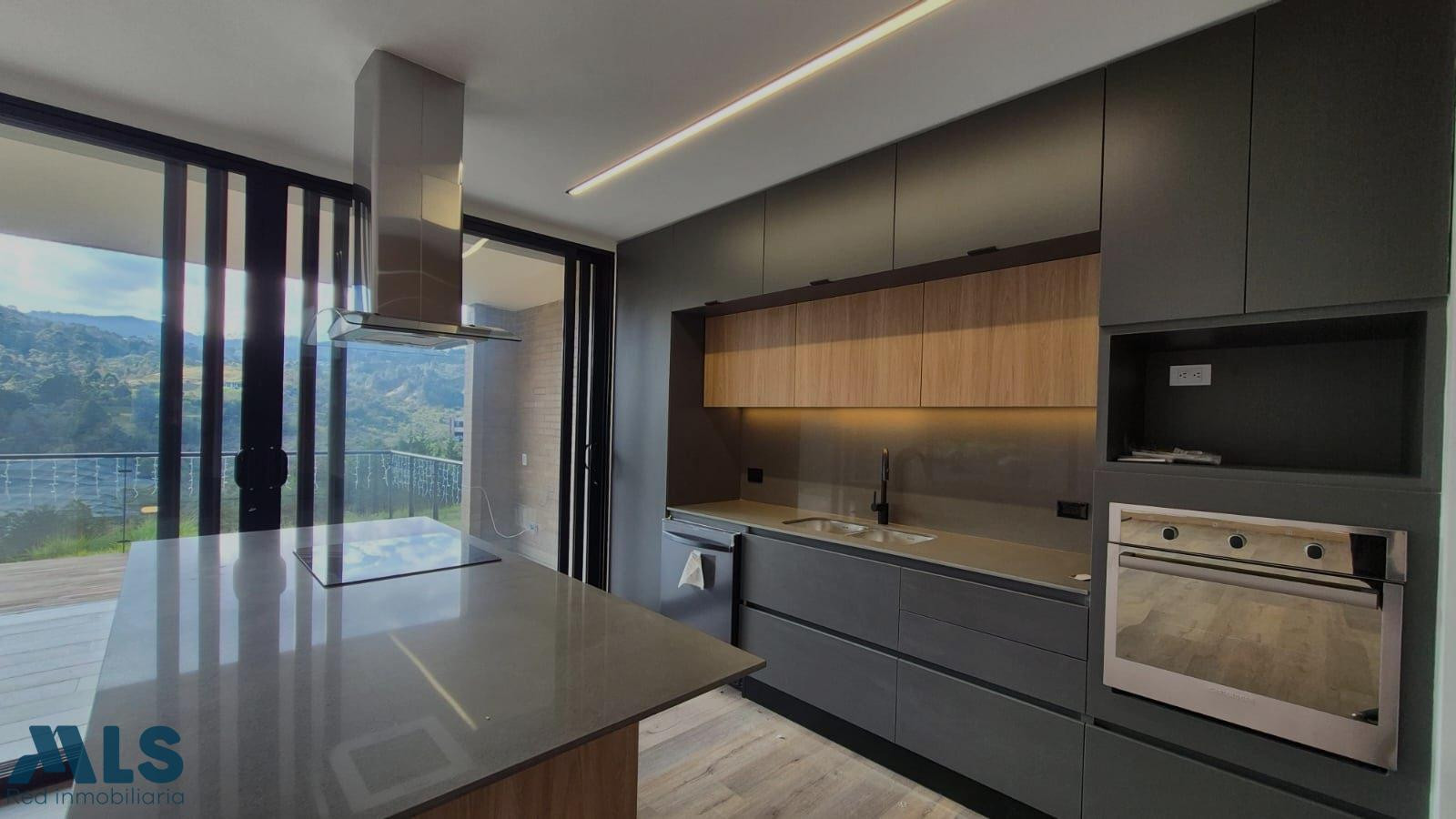 Amplio y elegante salón comedor integrado a una moderna cocina con isla, en un espacio abierto que se destaca por sus generosos ventanales, los cuales permiten una excelente iluminación natural y una agradable vista a la zona verde. Desde este ambiente se accede al deck exterior, ideal para el disfrute y el descanso. Además, cuenta con baño social, zona de ropas, cuarto de servicio toda esta área con acceso independiente. Parqueadero doble paralelo, con posibilidad de habilitar un tercer vehículo.Dispone de un cómodo estudio y tres alcobas, cada una con baño privado y vestier. La alcoba principal se resalta por su amplio balcón, perfecto para disfrutar del entorno natural.