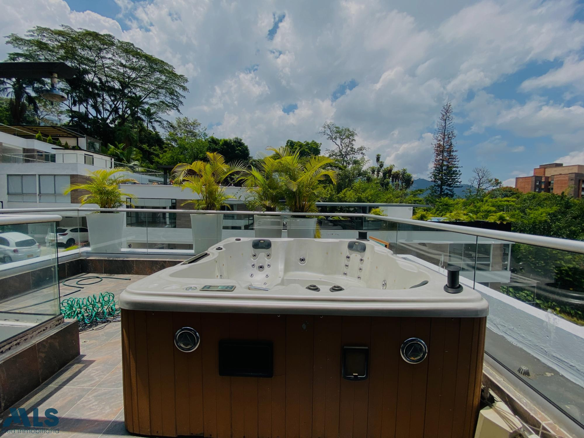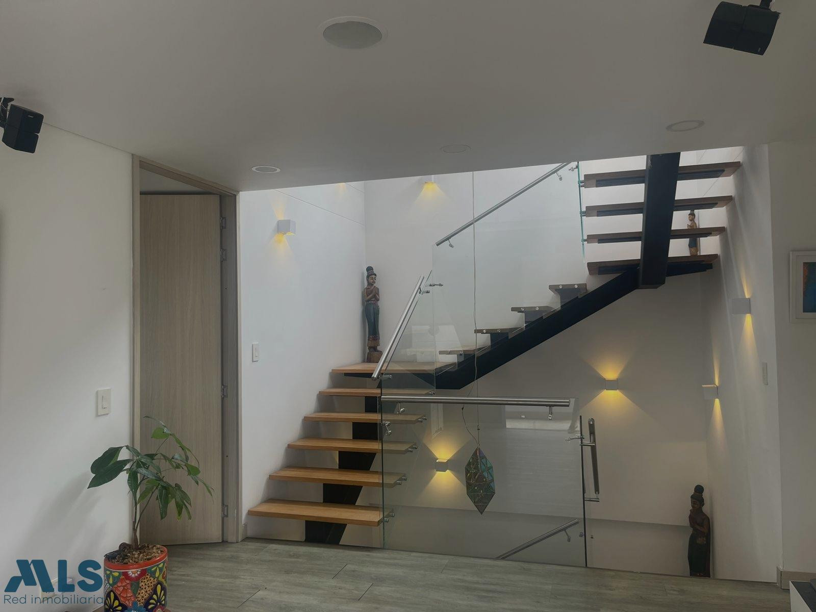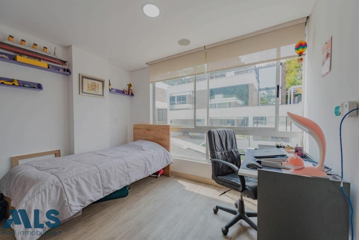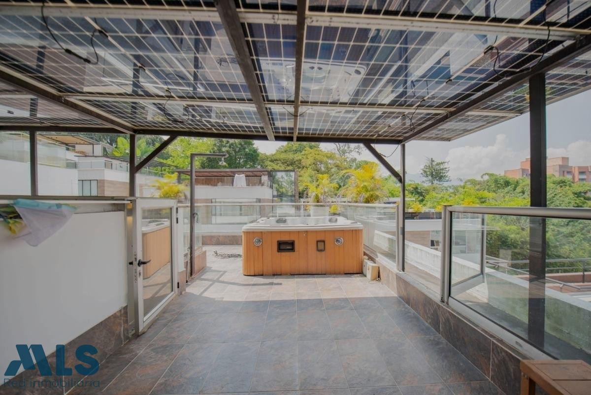Esta casa con energía solar y domotica, está ubicada en exclusivo condominio de solo 11 casas independientes, en la loma del Esmeraldal Envigado, en unidad cerrada con portería 24 horas, la casa tiene 250m, 3 alcobas cada una con baño y vestier mas alcoba de servicio con baño, una terraza para disfrutar del jacuzzi, dos parqueaderos cubiertos y uno sencillo y parqueaderos de visitantes, tiene dos cuartos utiles o uno que puede ser usado de estudio y además una amplia biblioteca, baño social, cocina abierta, cuarto de ropas y de servicio, cámaras de seguridad, alarma, zona exterior cubierta y solarium en el tercer piso.
