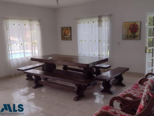 Venta de Finca campestre en San Jerónimo sector Leticia,  en Condominio a PUERTA CERRADA  a excepcion de algunas cosas personales. Cerca al  parque principal , con buen servicio de transporte, supermercados, depósitos, hoteles. Casa con dos niveles distribuidos asi:1° Nivel: sala, comedor, baño social, cocina integral mixta a pipeta, barra americana, zona ropas, 1 alcoba con su closet.2° Nivel: star, 4 alcobas, 4 closet, 2 balcones, 3 baños, pisos en cerámica, parqueadero para unos 8 vehículos descubiertos, turco, piscina, mesa de billar, bbq, kiosko, alcobas con aire acondicionado.