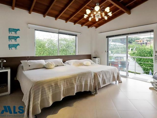 Hermosa casa campestre, ubicada en urbanización cerrada con portería 24 horas, a 5 minutos de San Jerónimo. El lote mide 800mts2 con un área de casa construída de 400mts2, distribuida en 2 niveles. Tiene 4 habitaciones, todas con baño y adicional 2 baños más. Salón comedor muy amplios, cocina integral abierta, estudio, 2 balcones con linda vista. Parqueadero para 4 carros y además de visitantes. Tiene piscina privada y jacuzzi, zonas verdes y jardines. En la zona social de la unidad hay cancha polideportiva, salón social y juegos para niños. Ideal para vivir o descansar.
