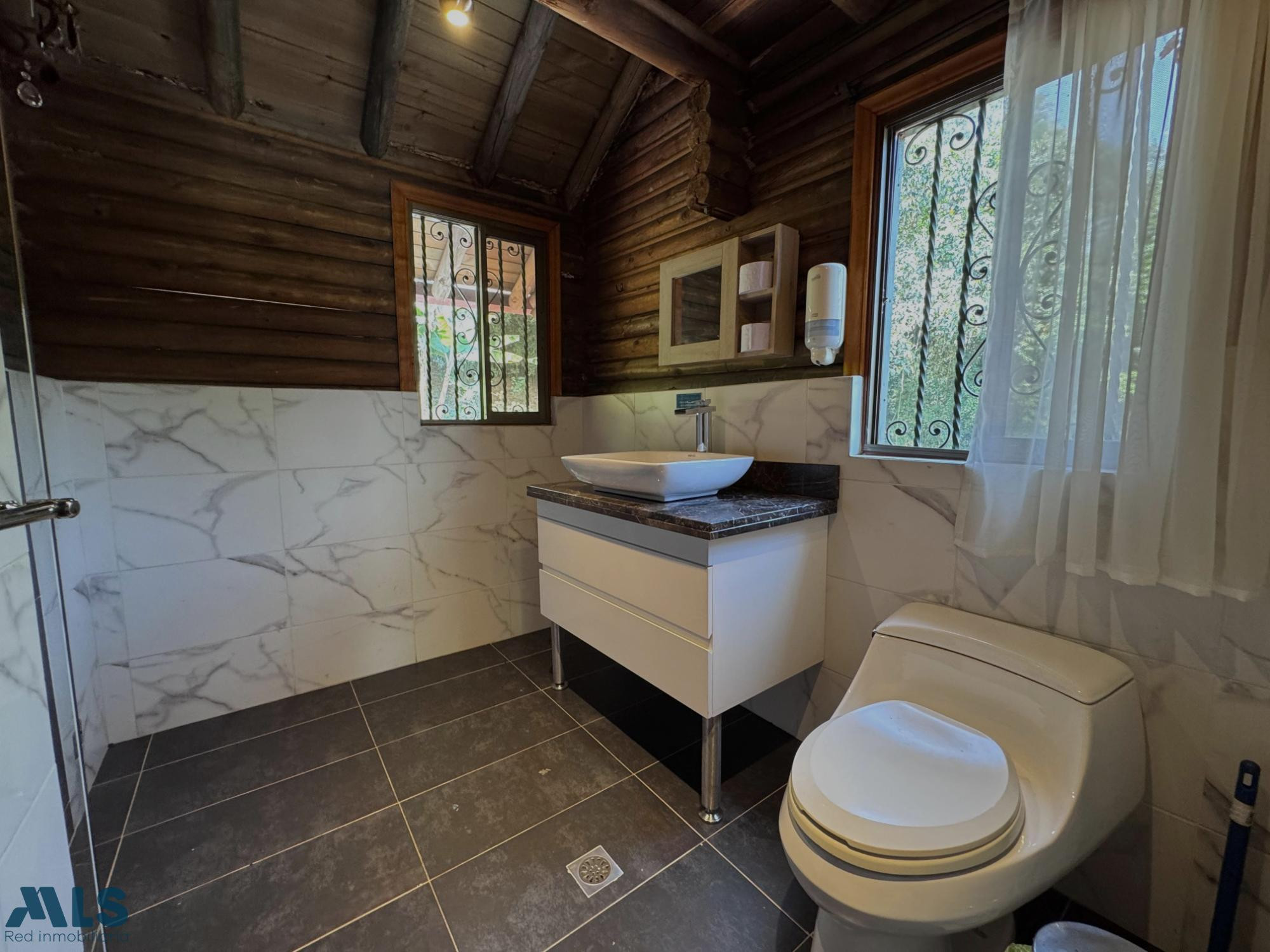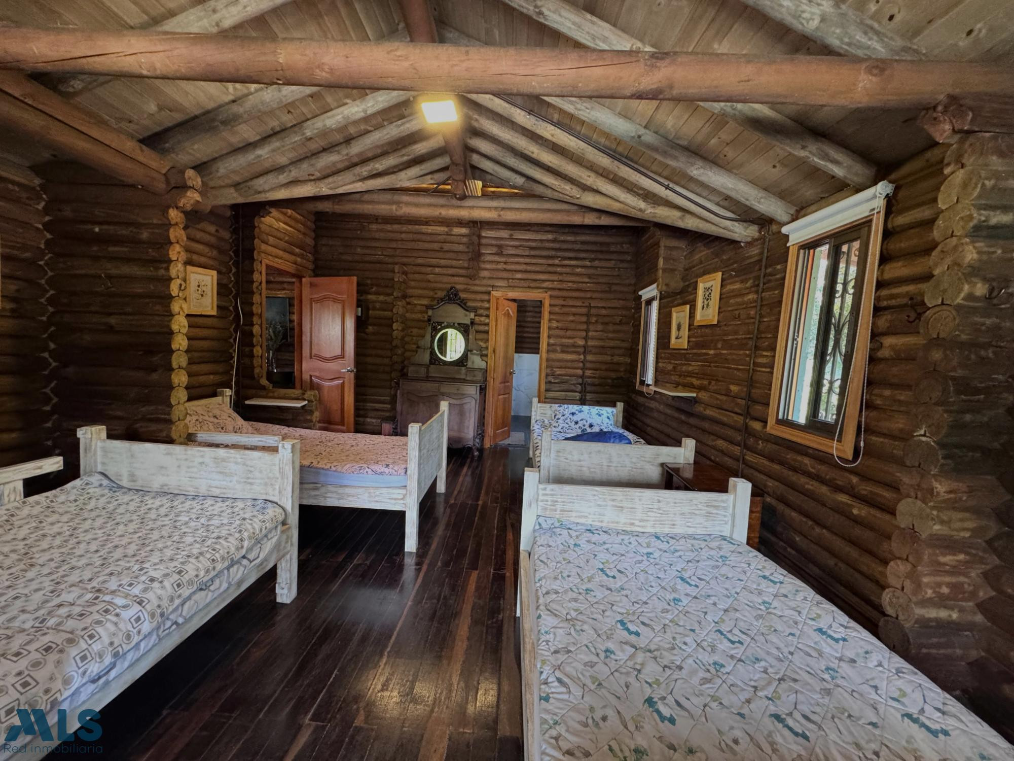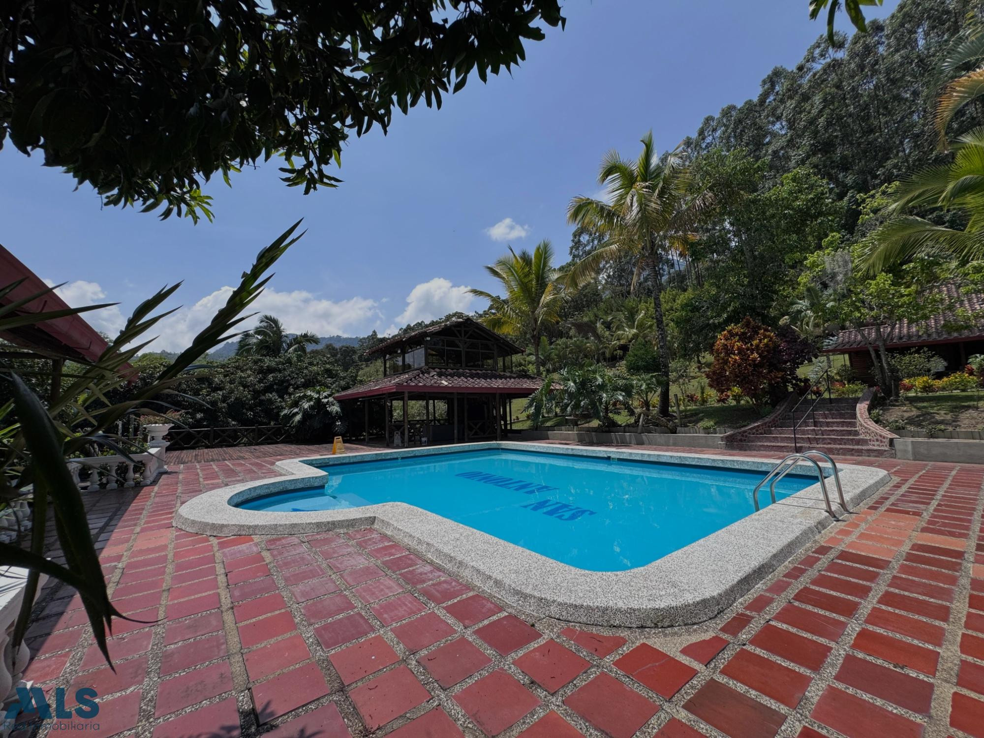 GM - VENTA DE FINCA VEREDA EL CINCO FREDONIA ANTIOQUIA. Finca de 2 niveles, con área construida de 255.35 m2 y de lote de 9.600 m2, la casa cuenta con 4 alcobas, 3 de ellas con baño, baño social completo, sala y comedor amplios, estudio, Balcón, calentador, zona de ropas, patio, jardín, Terraza, 2 parqueaderos cubiertos y hermosa vista natural. La finca cuenta con vigilancia, juegos infantiles, piscina, zonas verdes y zona de mascotas. Tiene cámaras de seguridad, remodelado en 2018, con casa de mayordomo y 3 kioskos. Ubicada en zona rural residencial campestre, con acueducto veredal y de nacimiento (4 tanques de reserva), a 10 min de zona urbana y cerca de vía principal, con cómodas vías de acceso y cerca de transporte publico.