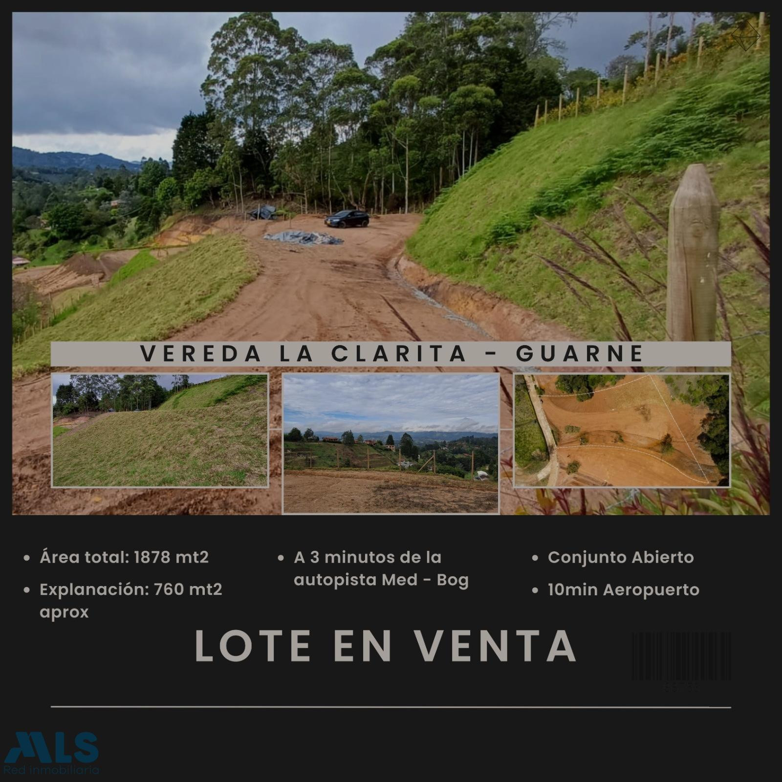 Lote de 34.000 m2 ideal para una parcelación (mínimo 20 lotes), norma de 8 viviendas x hectárea. Posibilidad de norma comercial. El lote tiene topografía variada, unas partes son onduladas, planas y otras son mas quebradas ideal para todo tipo de gustos. Esta cerca a la via principal, lo cual lo hace muy atractivo para vivir y trabajar en el sector. Es una zona muy tranquila, con una vista muy linda y muy bien ubicado. A solo 7 km del Aeropuerto Jose Maria Cordova.